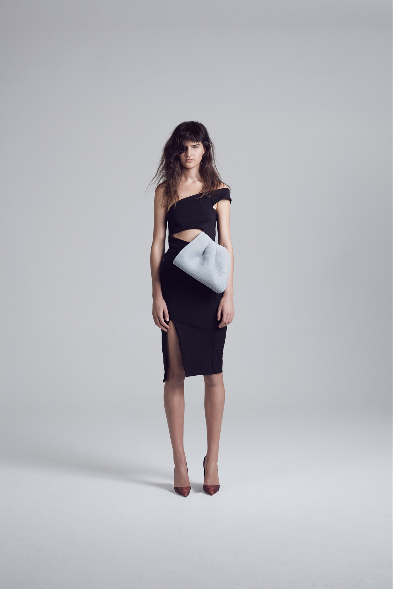 Toni Maticevski是來自墨爾本的設計師,年輕時曾經在Donna Karan以及Cerruti麾下工作過,後來就致力發展自己的品牌。這一件2015春夏的洋裝,我們可以很清楚看到在剪裁上面的功力,還有那麼一點解構的味道,可以感受得到他想創造一種極簡和垂墜的對比,但似乎下手過重,腰部那個垂墜設計有點像是新款的霹靂腰包。這個系列其實有很多好看的作品,但是只要是像這樣的垂墜作品我都有點保留,另一件洋裝,那個胸前的設計像極了在洗手台下掛的毛巾,隨時可以擦手或擦嘴。但是在長洋裝的剪裁和顏色對比色的應用上,就好很多。