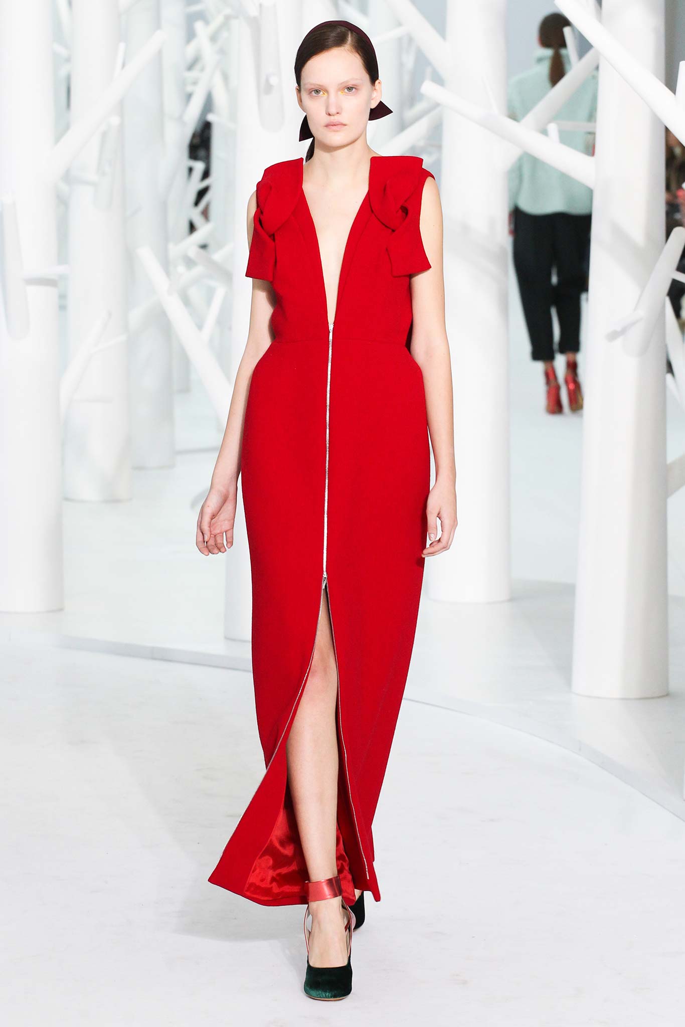 這件2015秋冬的Delpozo洋裝,在顏色上面就很討喜,不但亮眼同時也把她的氣色襯得相當好。我喜歡這件洋裝在肩膀上面的設計,精巧的抓皺技巧,讓洋裝的層次看來豐富許多。拉鍊拉高/拉低也是有學問的,優雅和低俗通常都取決在這幾公分裡面,我喜歡她維持裙子不開衩而讓上身保持低胸的樣子。有點可惜的是腳上那雙Brian Atwood的高跟鞋,顏色看款式都好看,但是被紅毯和衣服吃掉了。