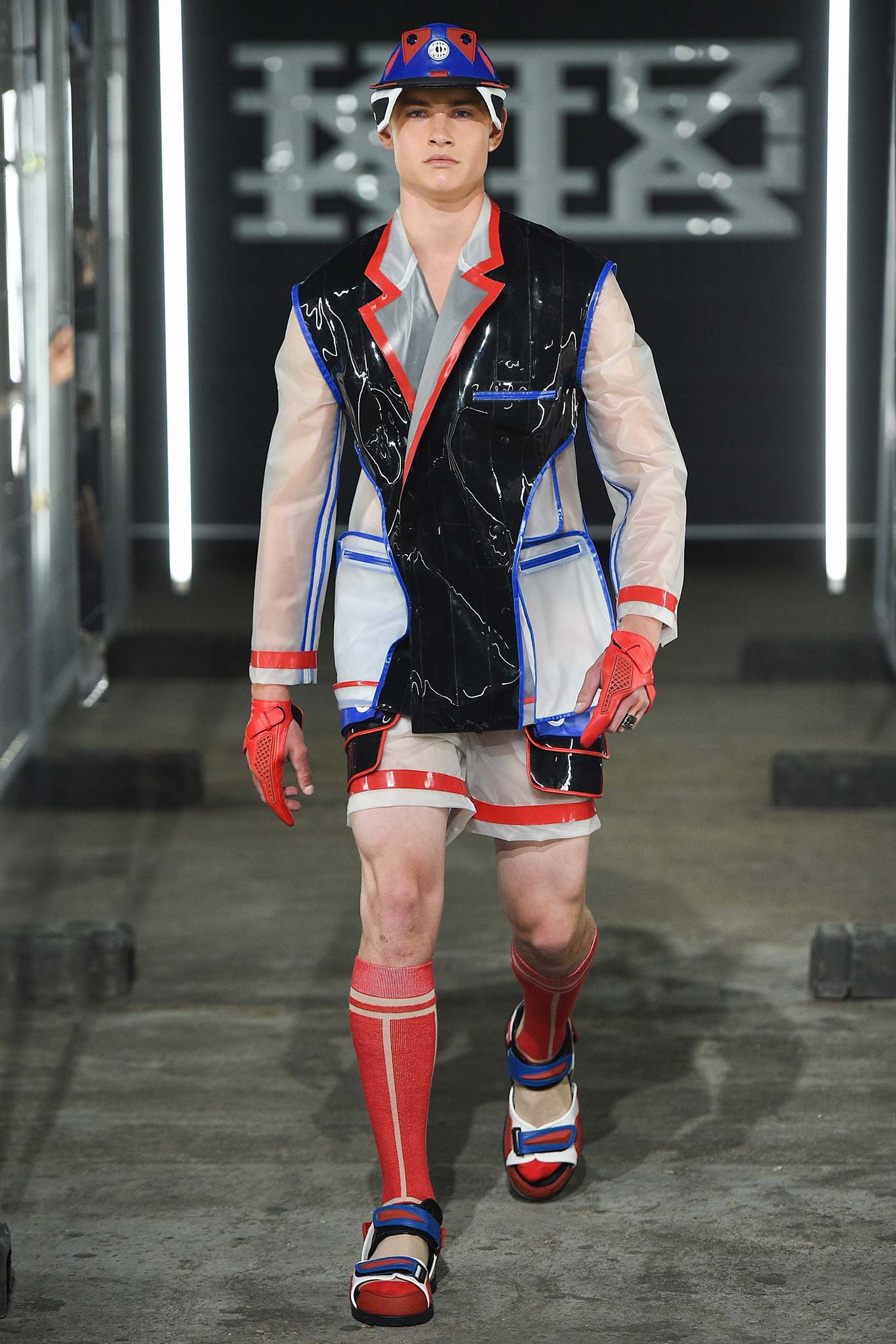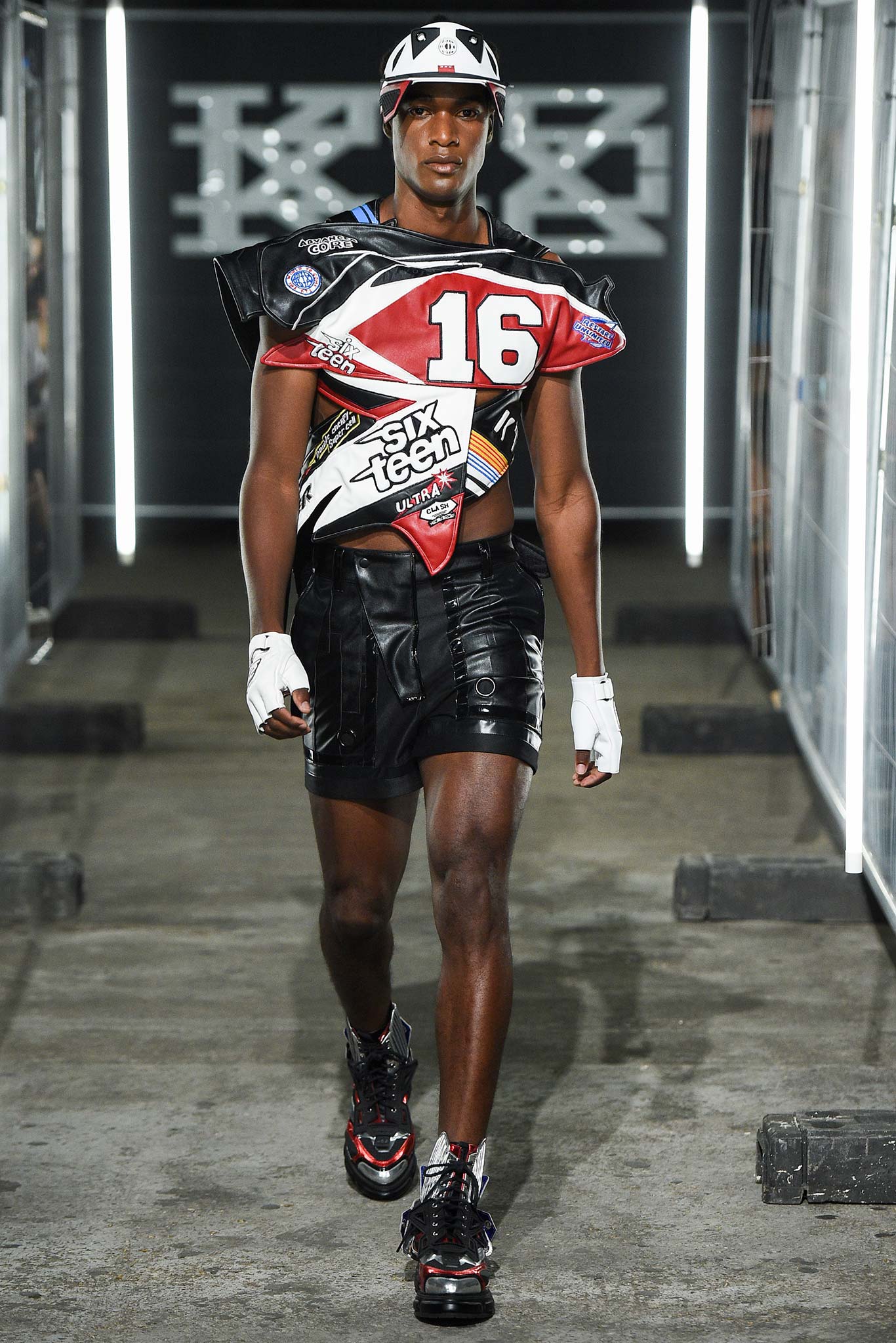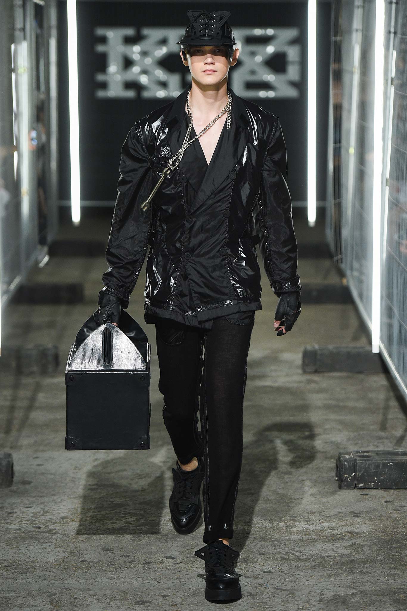 KTZ的品牌特色很鮮明,走的是自己獨樹一格的審美觀,愛者恆愛。上一季的印花風格還印象猶新,這一次他又挑戰了自己,設計理念從男性鍾愛的運動元素、超級英雄為出發點,然後最大的挑戰在於面料上的創新。