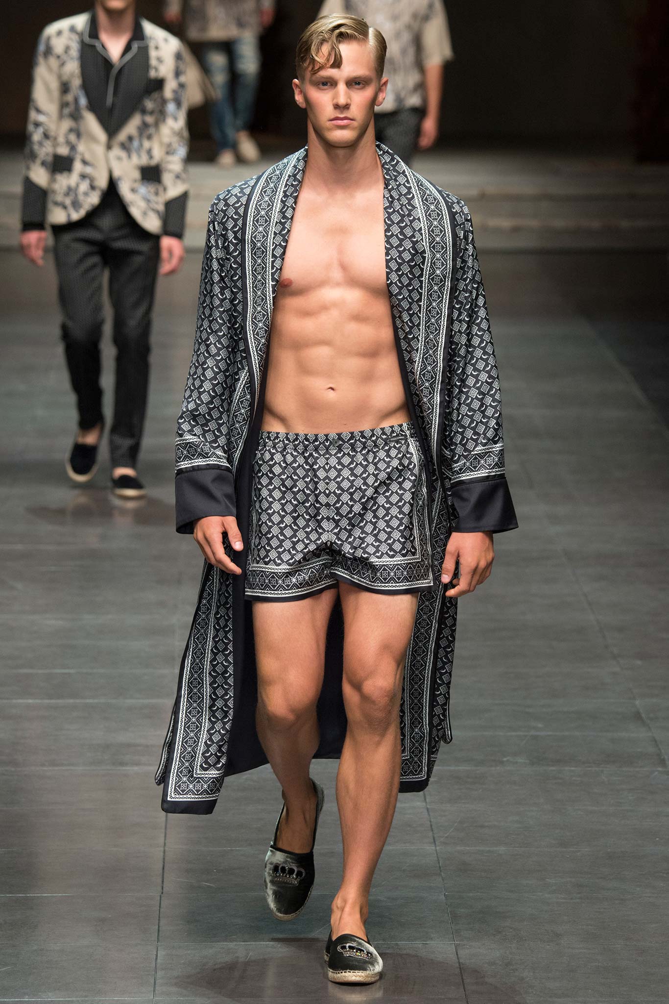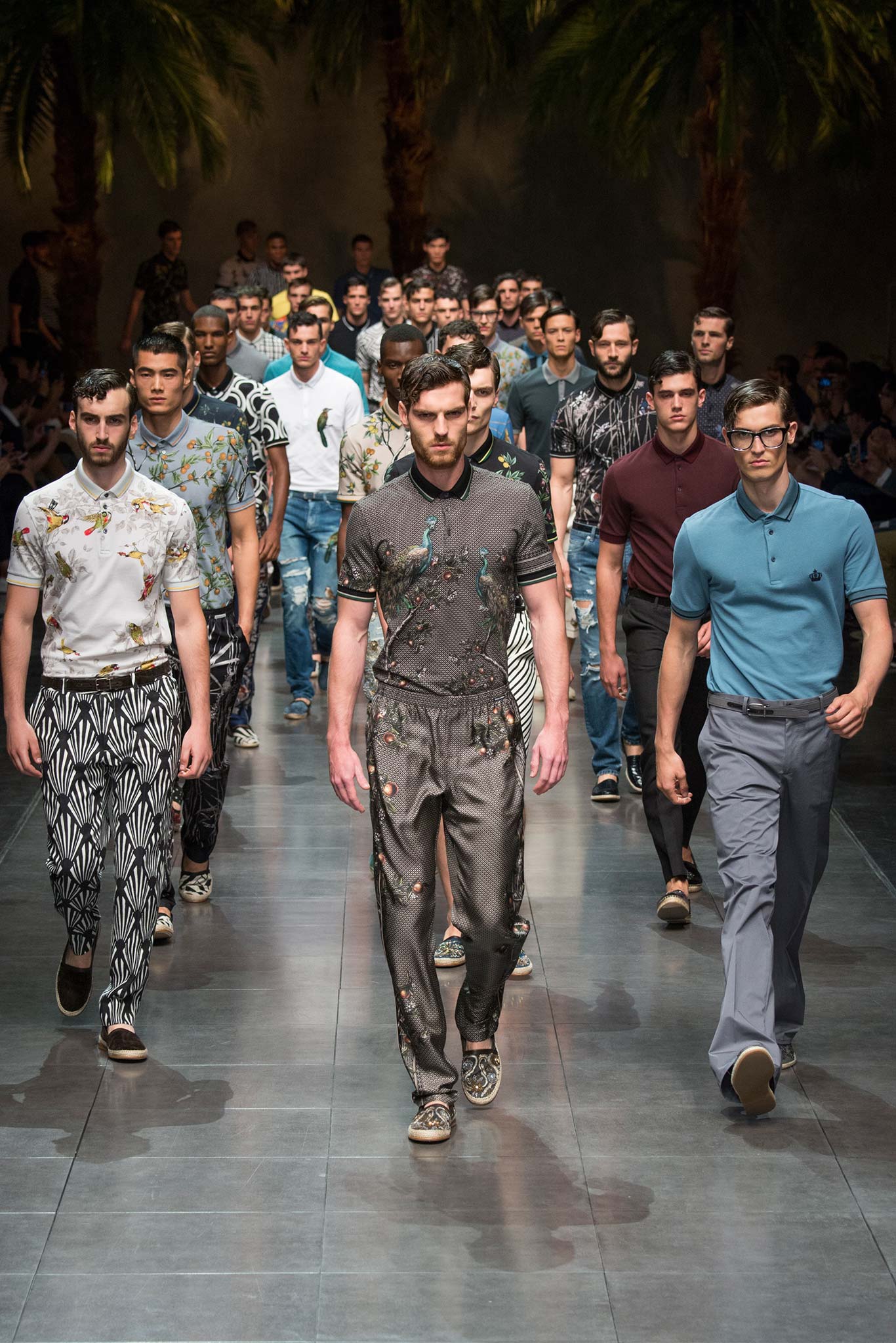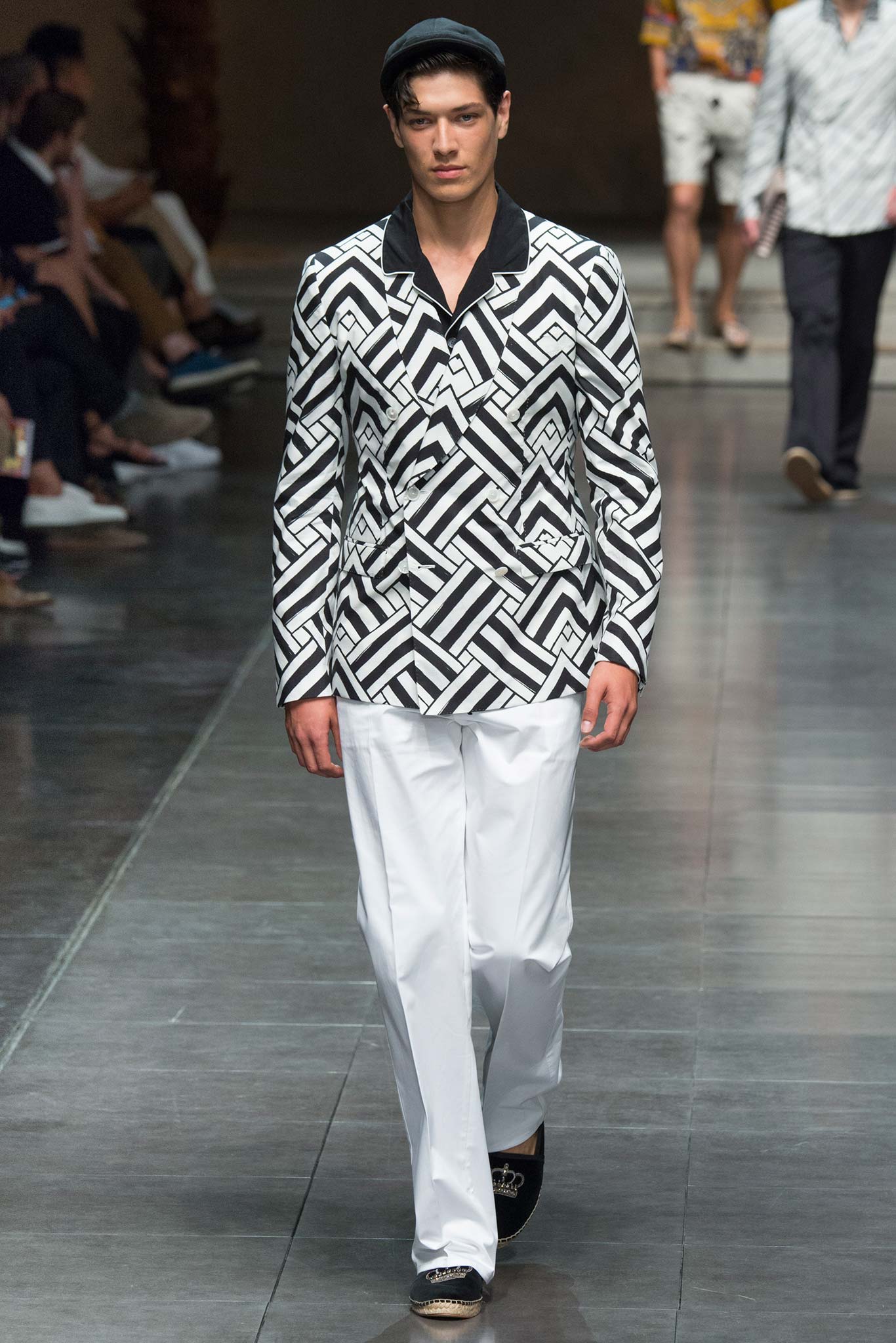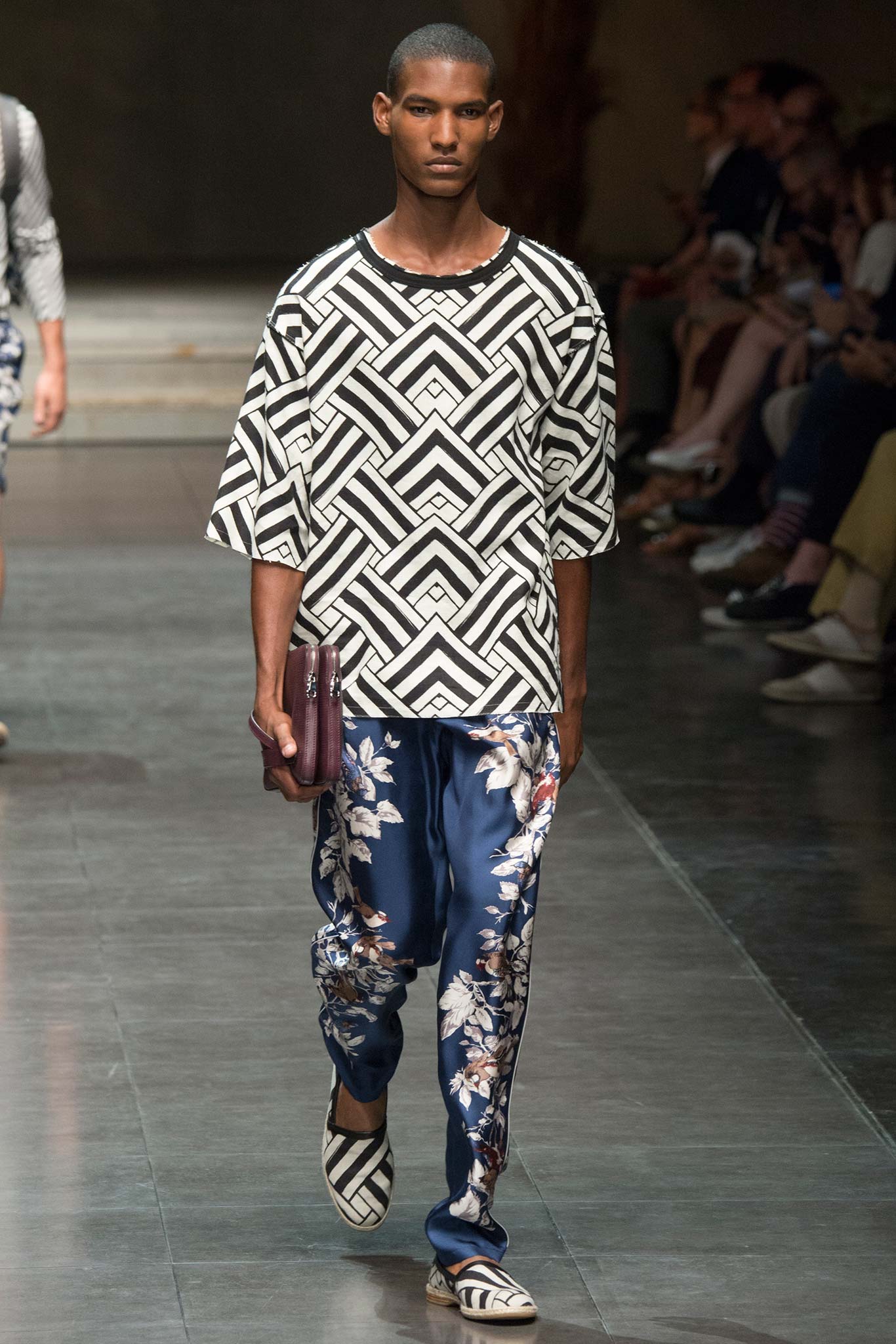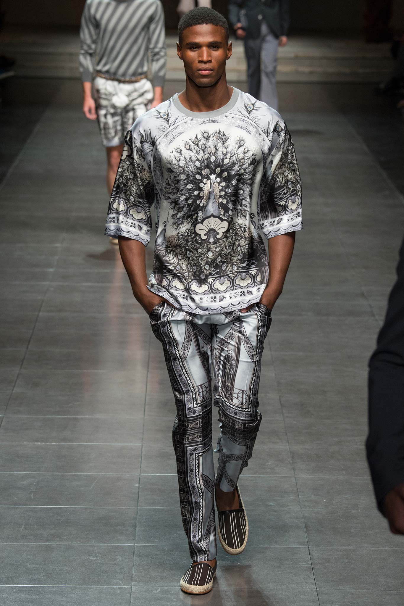 接下來,我們可以看到Dolce&Gabbana把西方輪廓的剪裁當作畫布,在上面出現許多東方的工筆花鳥畫、人物輪廓畫、建築畫通通都是重點。除此之外,我們也能看到許多以清朝服裝結構為本的衣服(像是肩線的輪廓)都能看出他們的用心。其中一件上身像是麻布袋面料的上衣,繡有聖母像;但是褲子上的印花卻是中國的皇帝,這樣的幽默我還挺喜歡的。當然,品牌最後幾套有點走火入魔的彩色印花西裝看來詭異,但認真看裡面的印花,可是有龍、皇帝、傳教士、神父這些混搭呢!