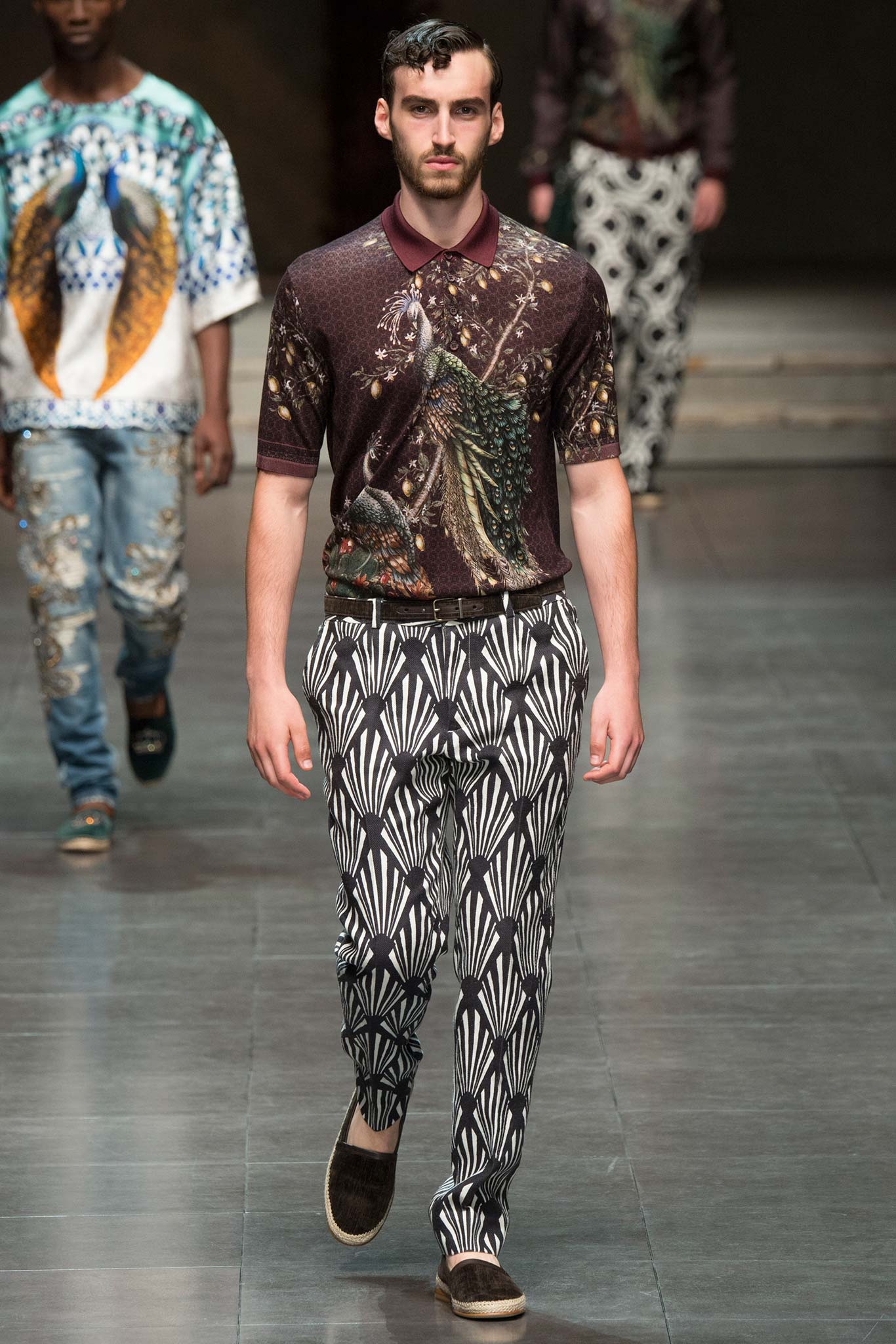 大部份的服裝輪廓和剪裁都保持著這個品牌的經典風格,但是在印花圖案上,第一套出現的孔雀我覺得真的是選得太好了。孔雀,從希臘羅馬神話就有;同時在中國裡,只有五品以上的官員才能配帶單眼花翎,因此,由這樣鮮明,又共存在東西方文化中的動物作為開場的融合,我就已經被說服了。