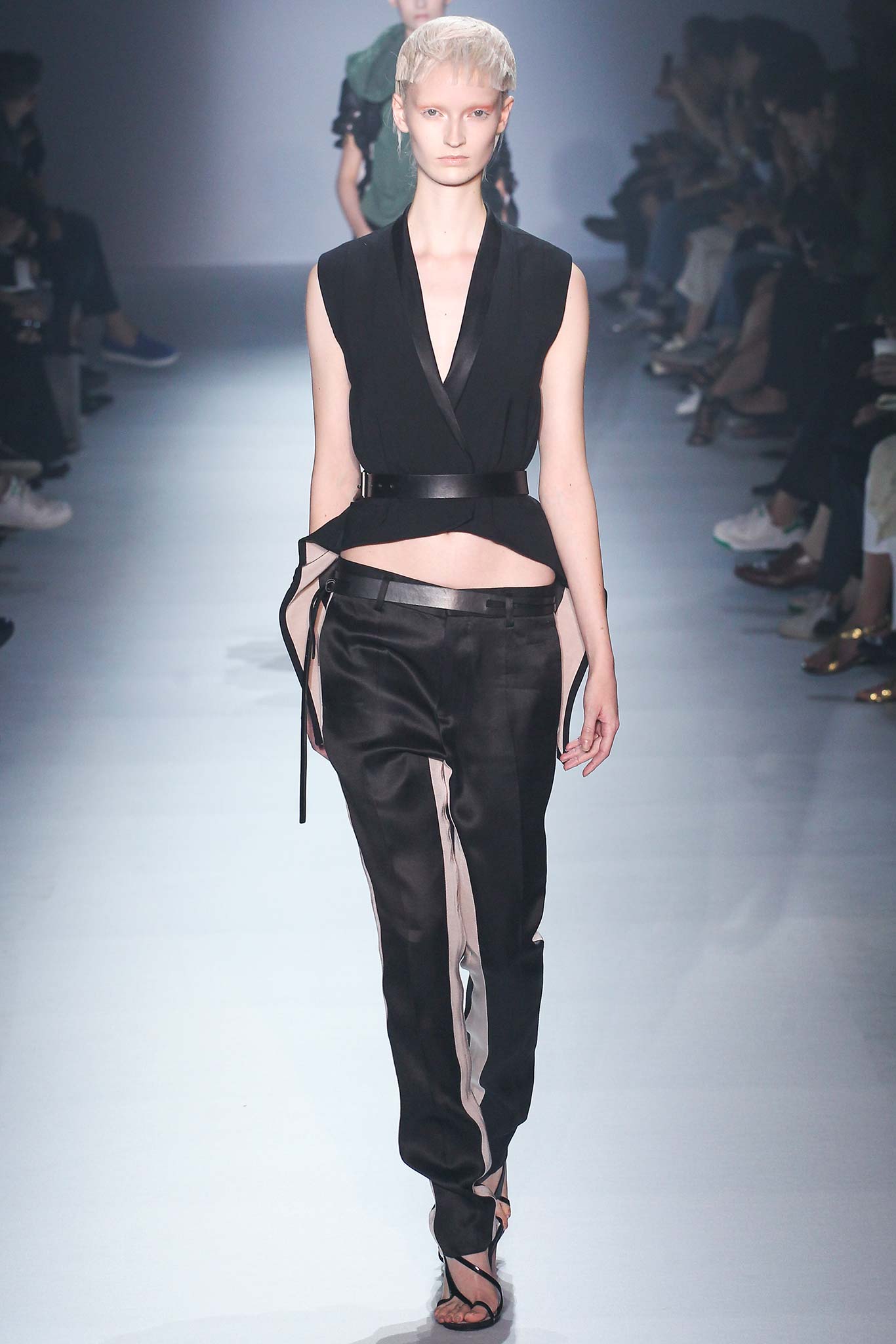 戴佩妮選的是Haider Ackermann 2015春夏的褲裝,酷翻了!這件有皮革滾邊的黑色上衣太有個性,看來是個剛練完忍術就奔來的新科女忍者。