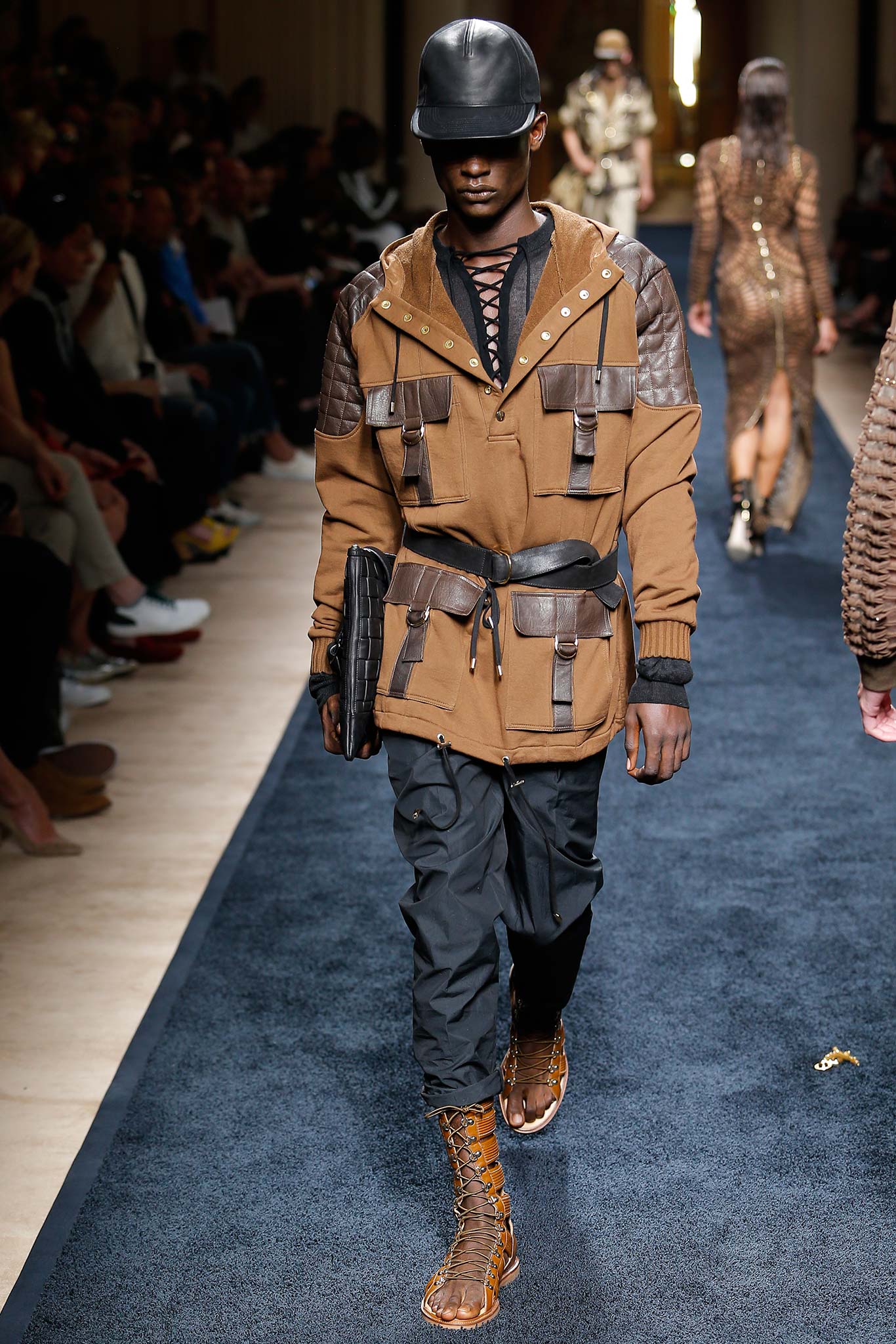 這是Olivier Rousteing第一季男裝的秀,之前都是lookbook形式,所以他特別兢兢業業。我總是喜歡帶著一些想法的設計靈感,不管是設計或是人生路途上,都要面臨很多未知的挑戰,披荊斬棘是必要也必須的,因此看到這一季以探險家、考古學家的風格來走runway,我由衷感到喜歡。
