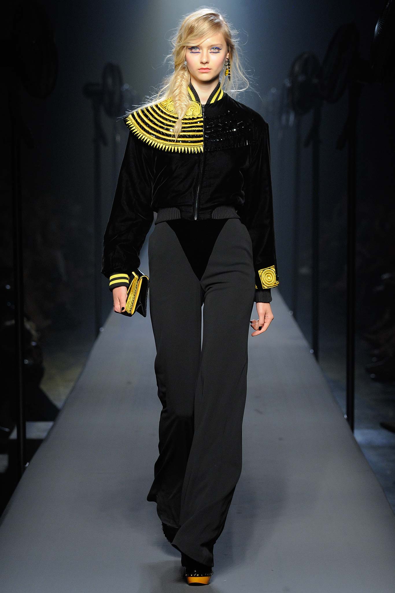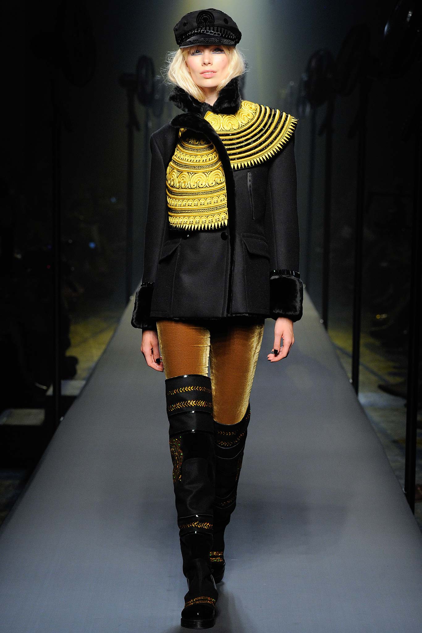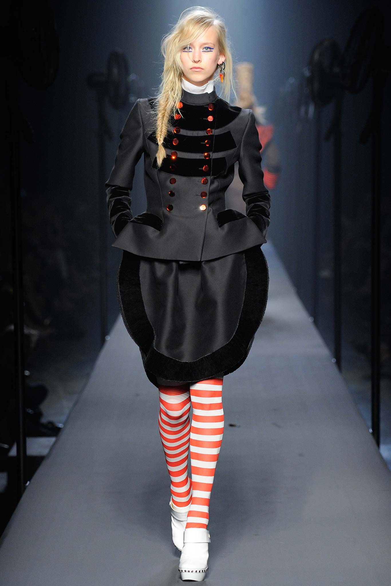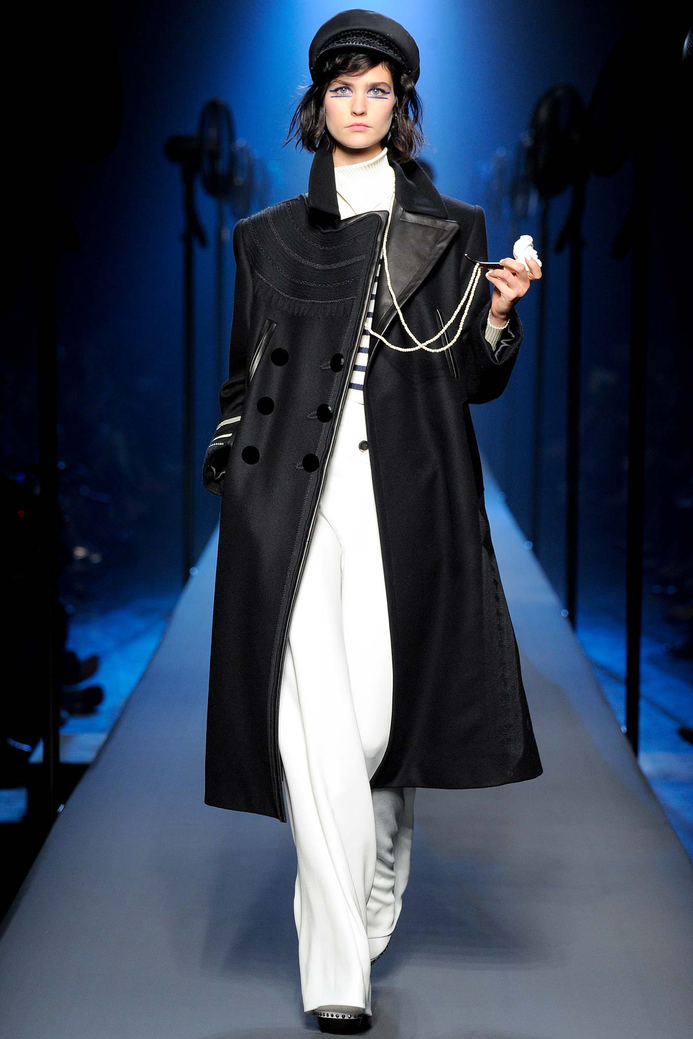 這一次的靈感是由他經典的水手服系列貫穿,好像是一場航行的旅程,而目的地就是Brittany(法國的布列塔尼)。而我們可以看到由Breton文化啟發的帽子戲法,相當吸睛。整個系列沒有太多誇張的輪廓,但是在方形上身和圓型裙身的組合之下,卻也多采多姿,上面顏色的搭配還有刺繡的運用讓人感覺得出高級訂製服的質感;最後一套由Anna Cleveland所詮釋的皮草裝不但有著野性的氣息,同時也有高端高竿的工法,太好看了!