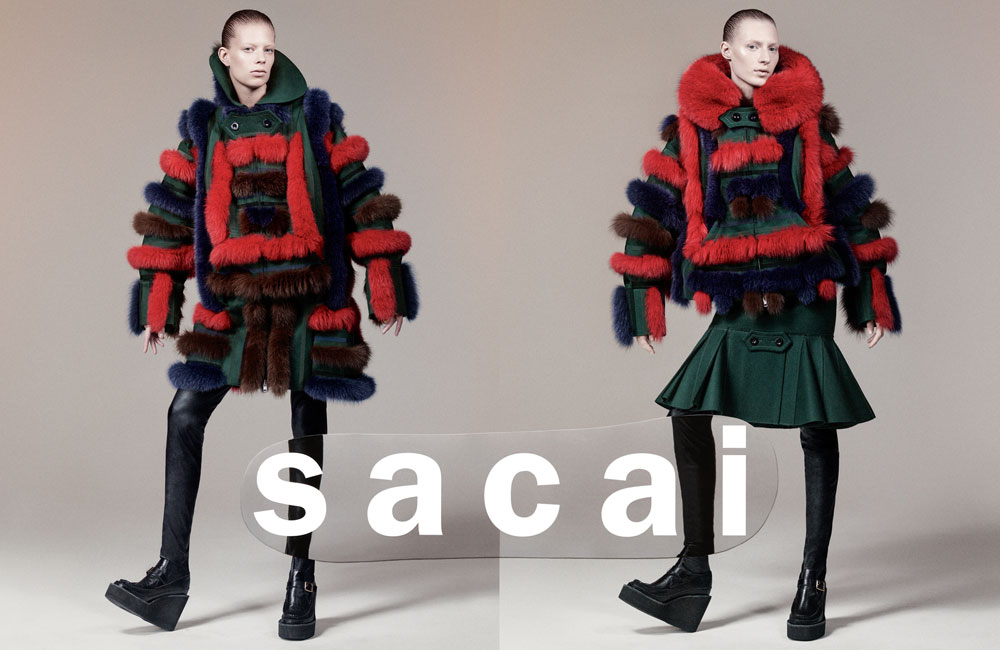 這樣的概念我們在LANVIN 2011秋冬也曾看過,只是當時沒有這麼明顯;KENZO 2012的完全對稱也很有視覺效果,Valentino 2015早秋的大片也有類似的手法,不過這次sacai簡單多了,喜歡!