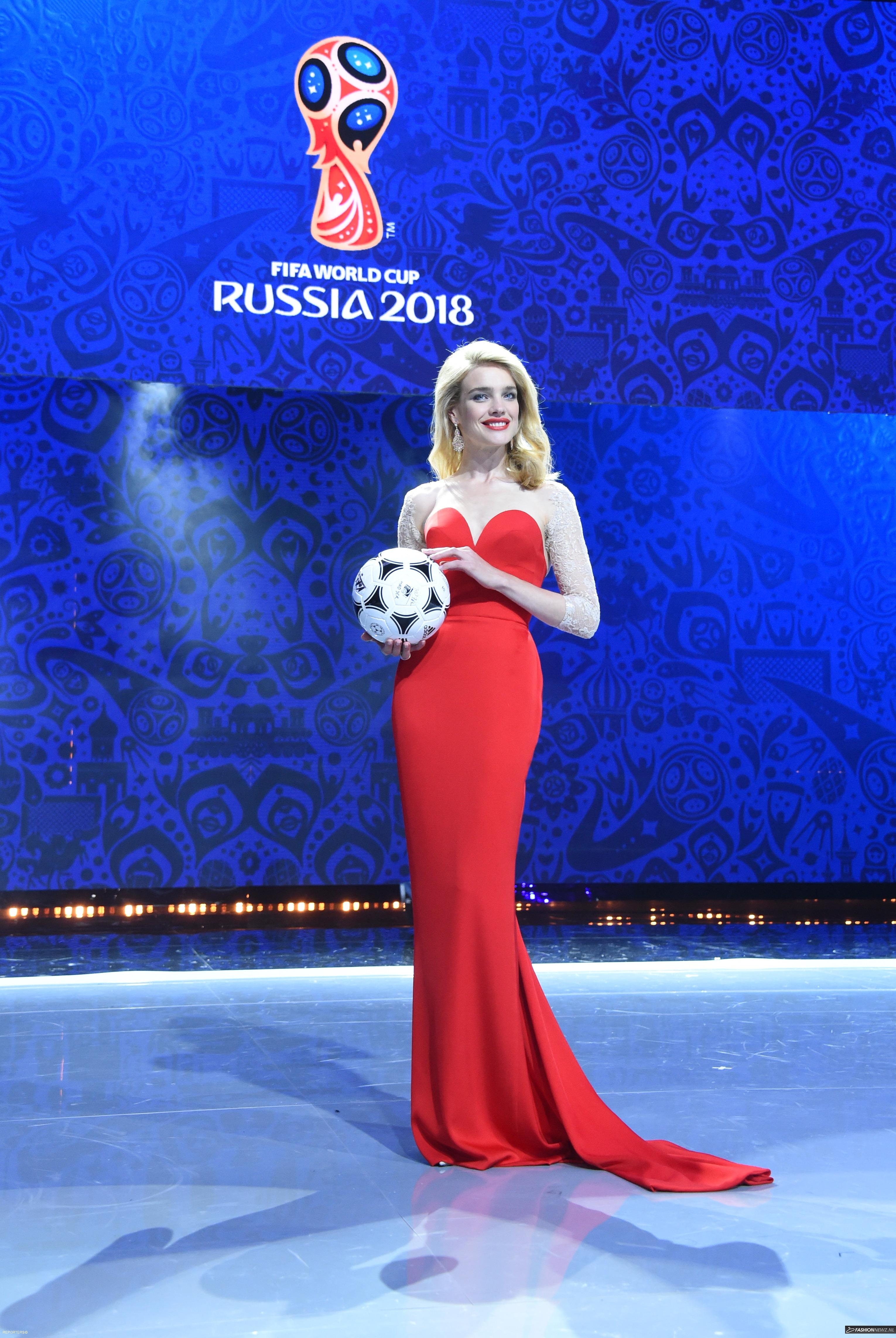 Natalia Vodianova到俄國協同主持2018 FIFA的外圍賽抽籤,很用心地穿了俄國設計師Ulyana Sergeenko特地為她設計的三套禮服,而且分屬俄國國旗顏色的紅白藍三色。