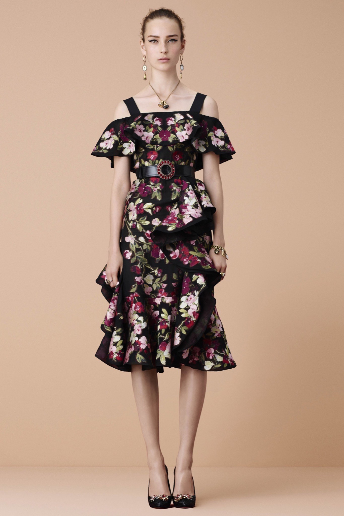 我喜歡這件禮服的印花,因為雖然是繁花似錦,但我卻覺得有點暗黑的氣質,像是在夜晚綻放的花一樣;然後不規則剪裁的荷葉邊裙身則很適合讓她露出黃金左腿,蠻好看的。