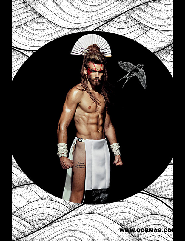 OOB Magazine最新一期裡找來Rune Kjelseth(這也是鮮肉),和攝影師Carlos Khu一同詮釋帶著東洋風味的新武士風。這衣服是選自Nabli Volkers 2015秋冬系列(我有一度誤以為是Thom Browne),很有意思。妝髮也相當適合,我想模特兒如果找現在的Andrew Garfield來拍應該也很合適吧(菸