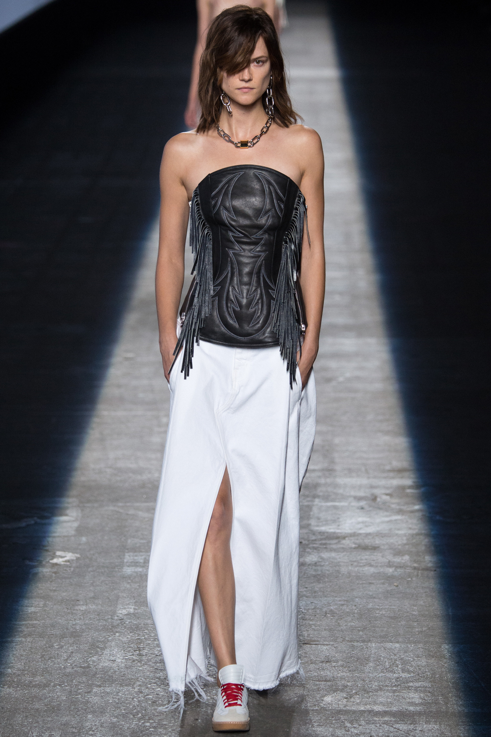 這一季幾乎每一套都可以直接一套就出門,而且都極端時髦;他拿手的街頭風、運動休閒風(直條紋長褲有沒有太好看)、不會太剛硬的軍裝元素、丹寧單品還有獨門的性感拿捏;這次又融入了他在Balenciaga裡面的一些元素(像是鏤空立體切割的輪廓、oversized的大衣)讓整體系列的層次豐富,此外,一些有流蘇的洋裝太酷了;這一季裡面的鞋子有好多也是實穿看來也百搭的,記得入手。
