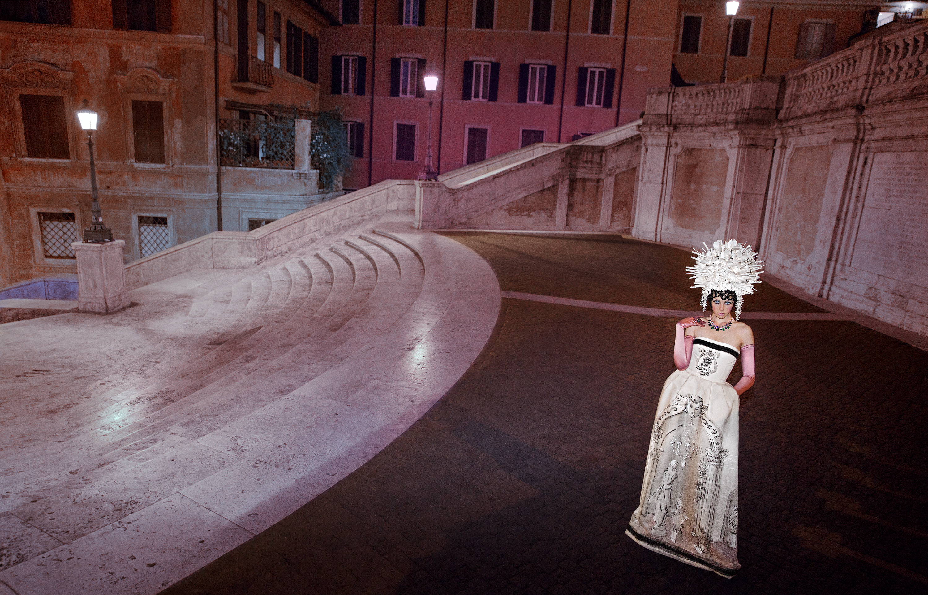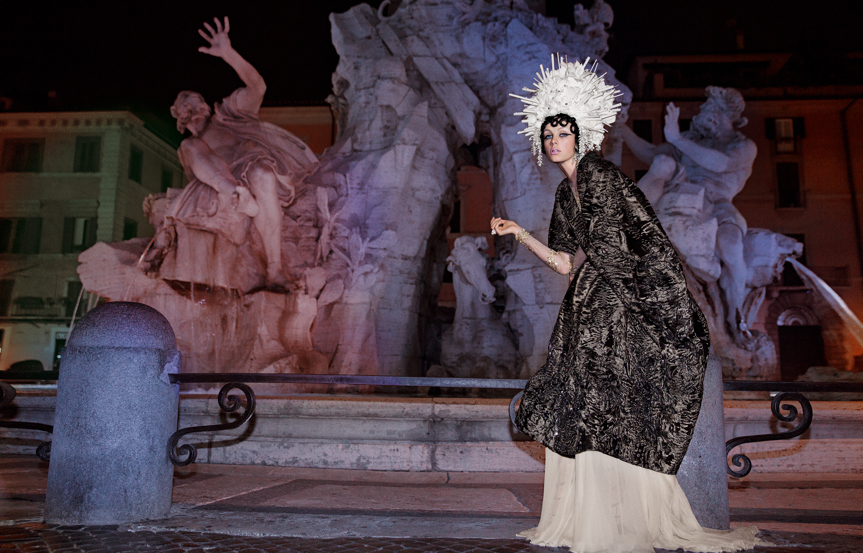 W magazine十月號請來了攝影師Inez van Lamsweerde與Vinoodh Matadin和超模Edie Campbell共同詮釋【When in Rome】這個主題的拍攝,造型師Edward Enninful選了Chanel, Christian Dior, Elie Saab, Giambattista Valli, Fendi, Armani Prive和Schiaparelli的高級訂製服。