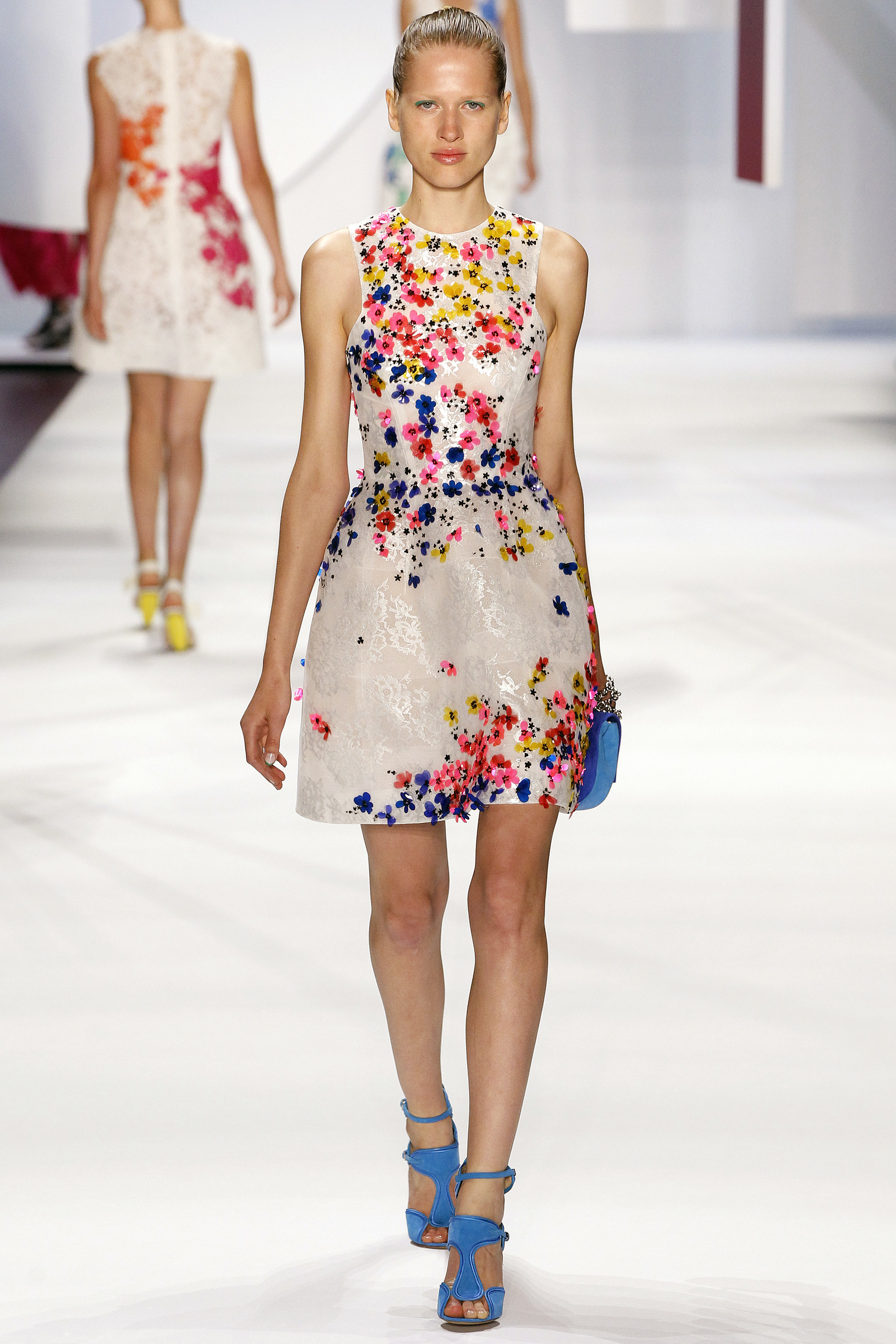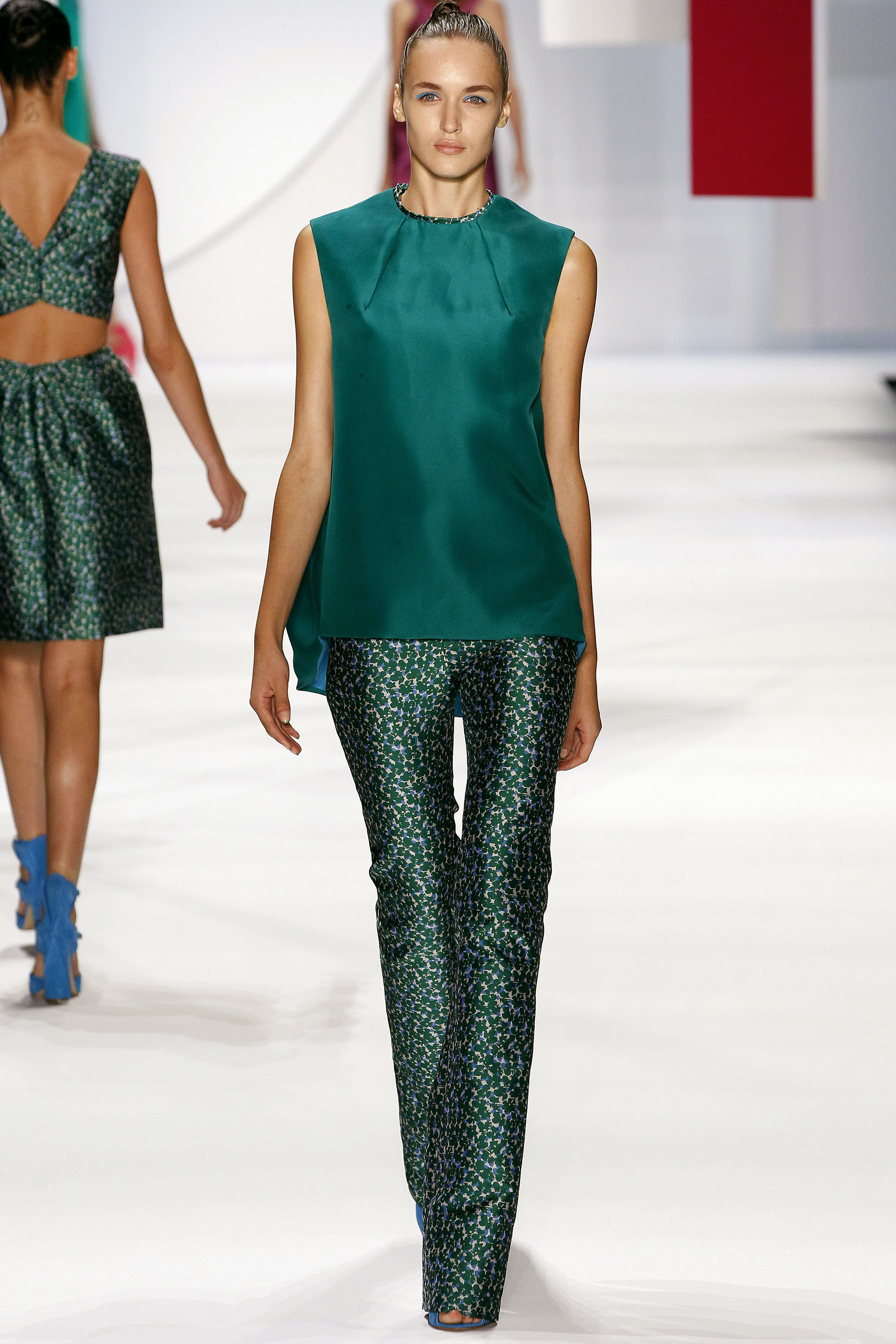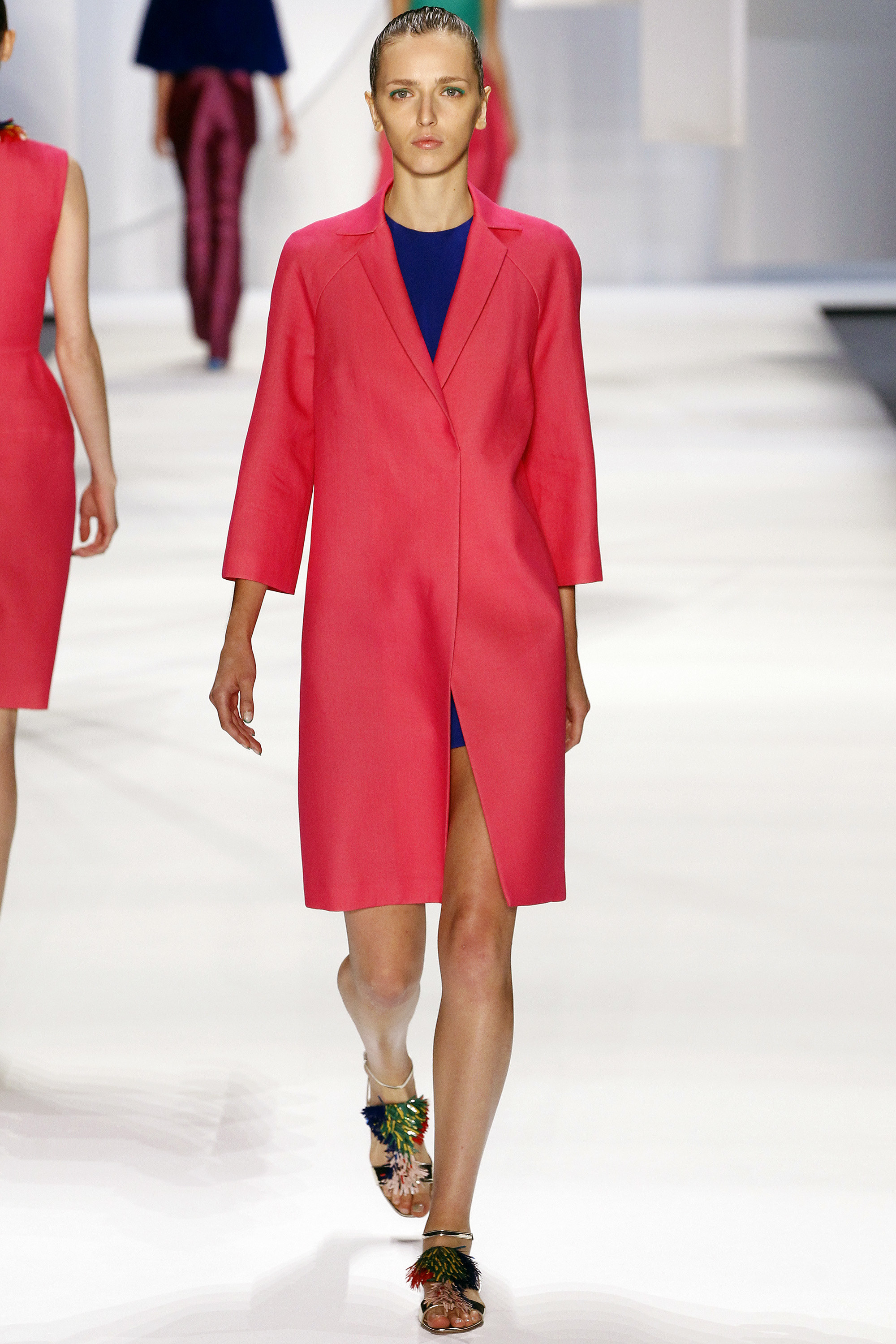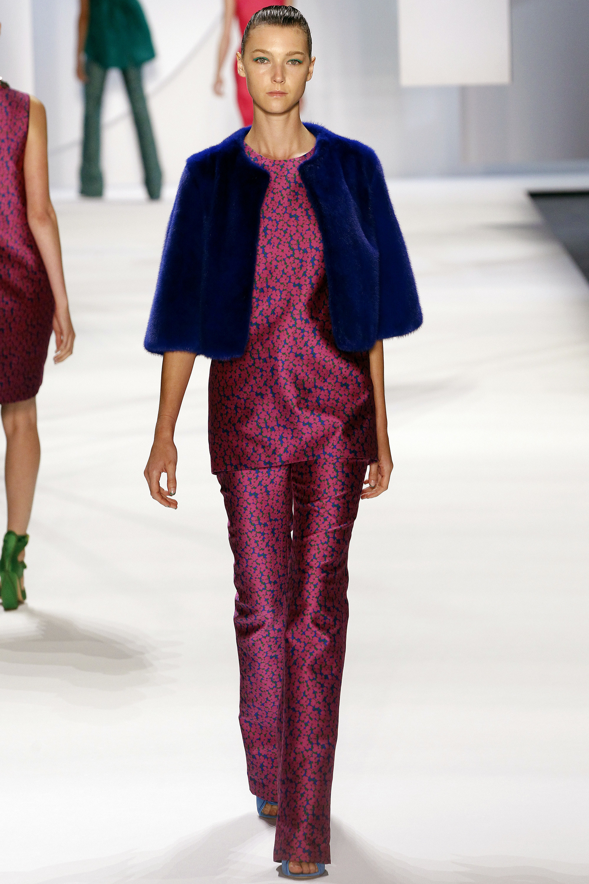 一開始的好幾套略嫌沈悶,直到開始使用顏色之後才讓我醒過來,可能又是我腦補,我在看這個系列的時候,腦海中不斷浮現Giambattista Valli的印花、Dior、Prada、Saint Laurent的輪廓,我比較看不到設計師自己的主張(除了美不勝收的顏色運用之外),感覺就是一系列好看的衣服,有點可惜。