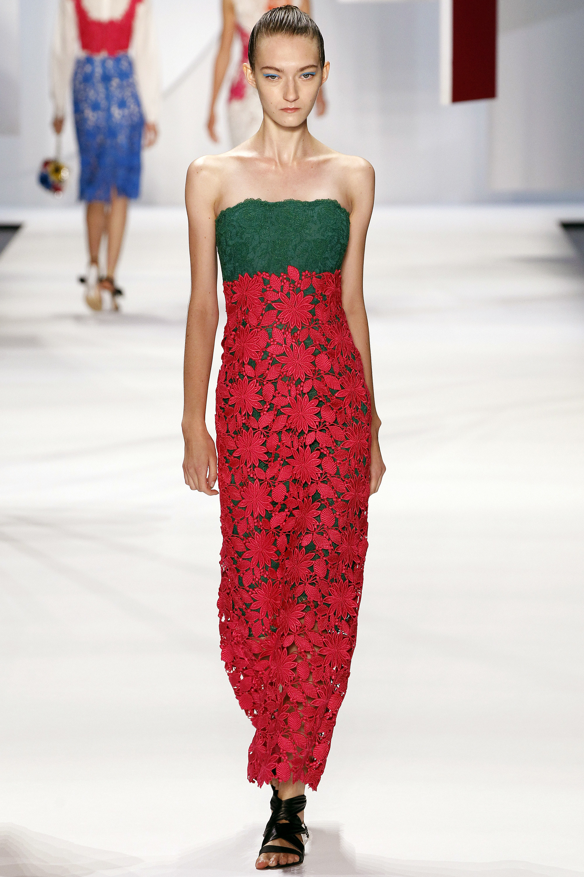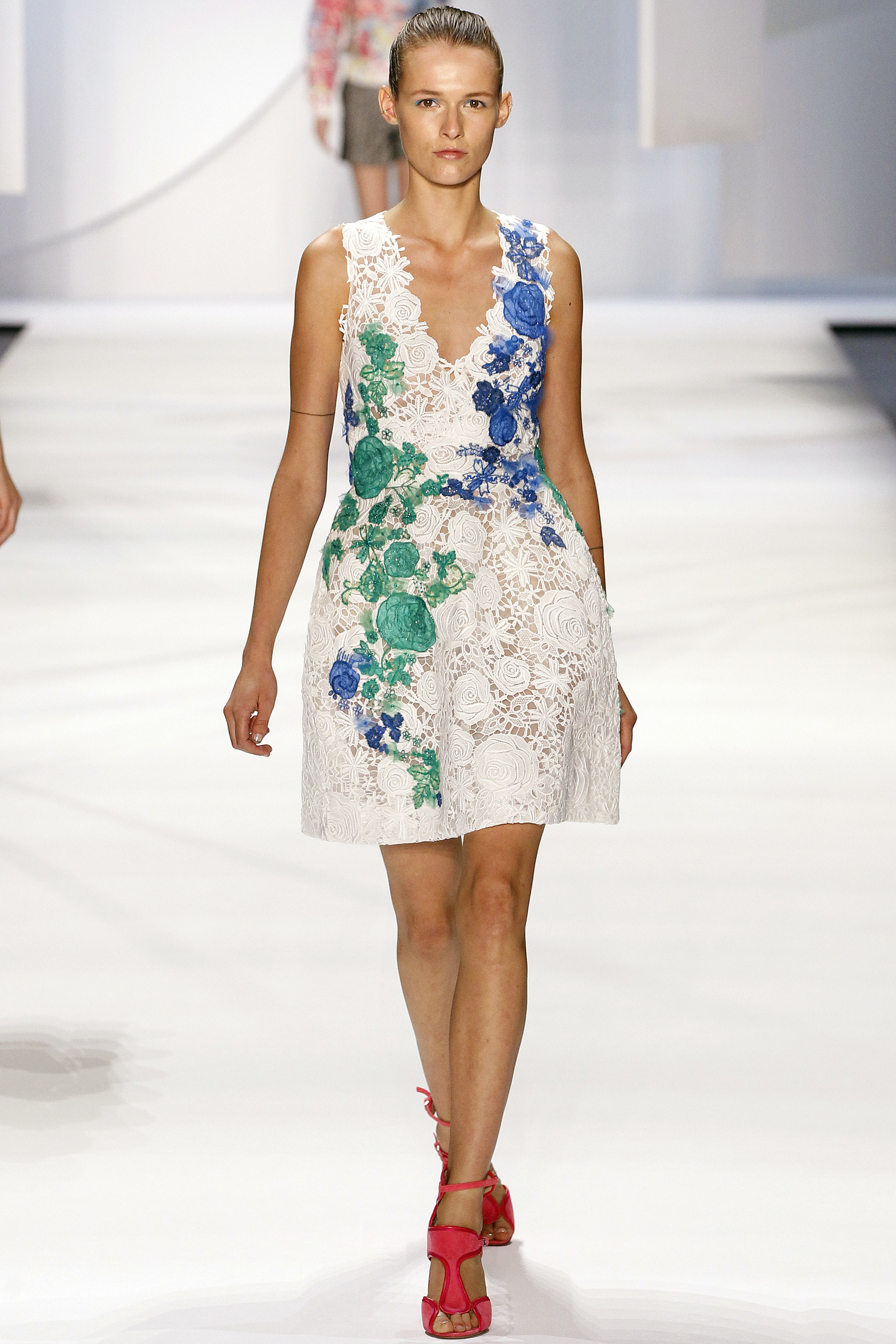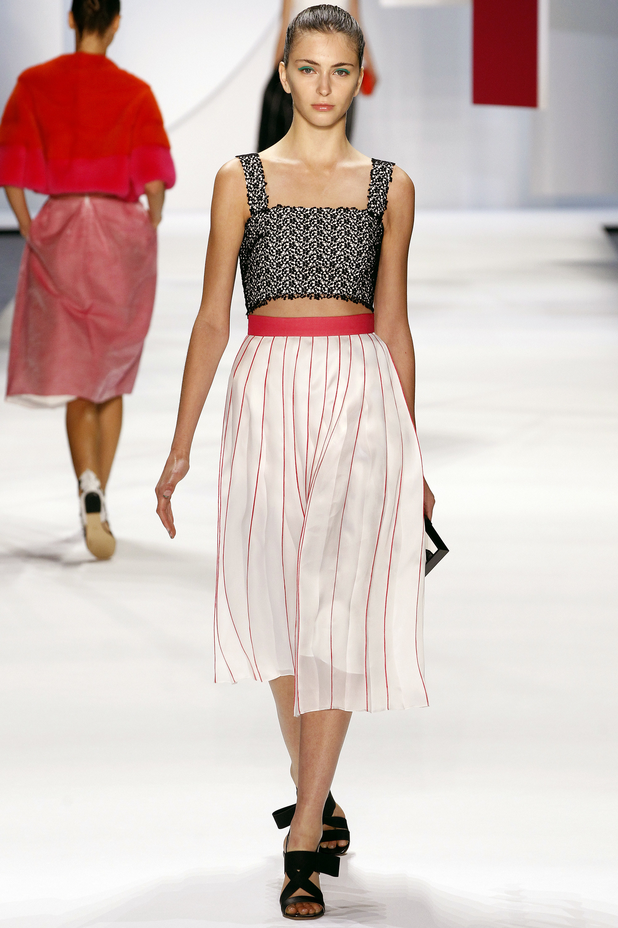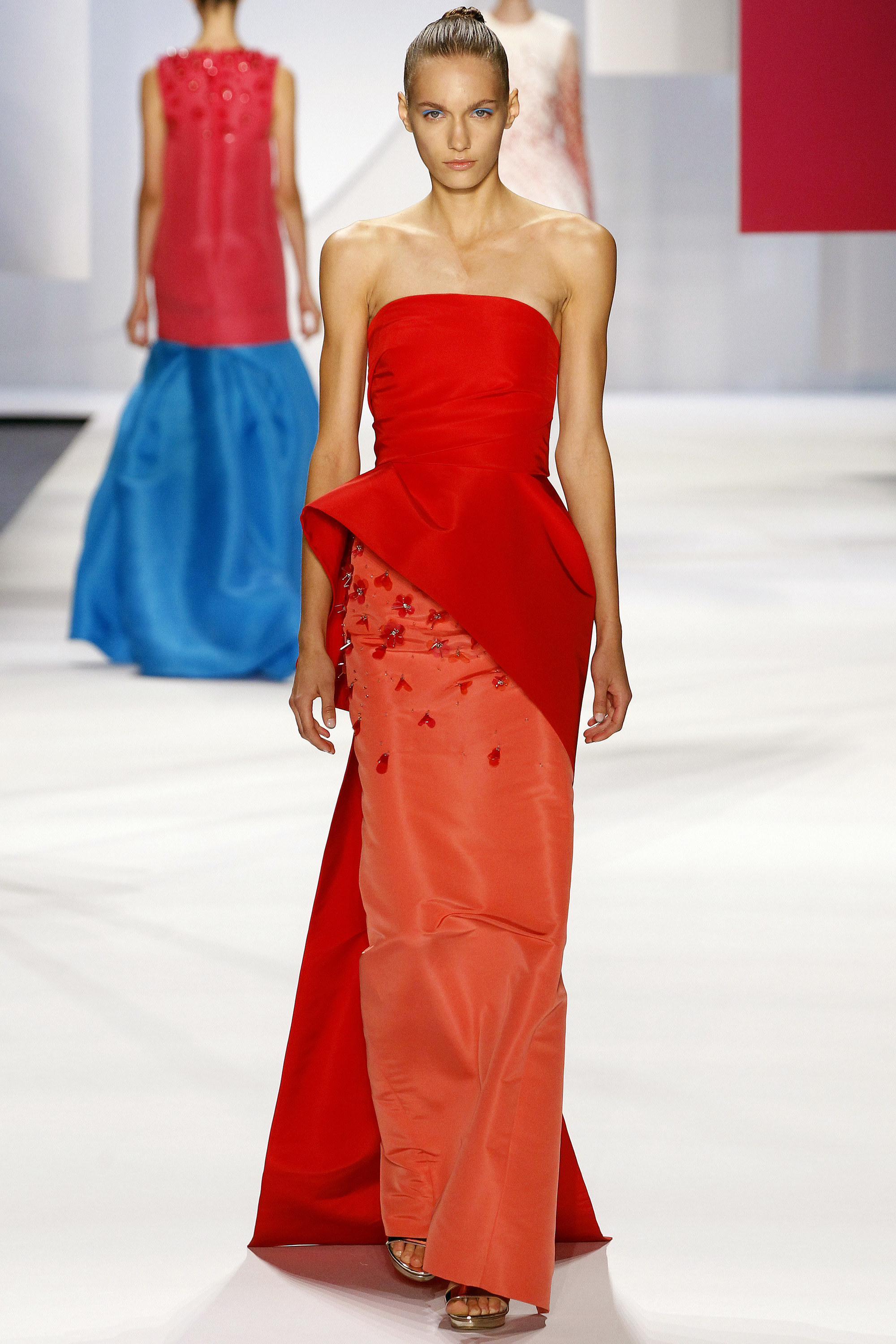 一開始的好幾套略嫌沈悶,直到開始使用顏色之後才讓我醒過來,可能又是我腦補,我在看這個系列的時候,腦海中不斷浮現Giambattista Valli的印花、Dior、Prada、Saint Laurent的輪廓,我比較看不到設計師自己的主張(除了美不勝收的顏色運用之外),感覺就是一系列好看的衣服,有點可惜。