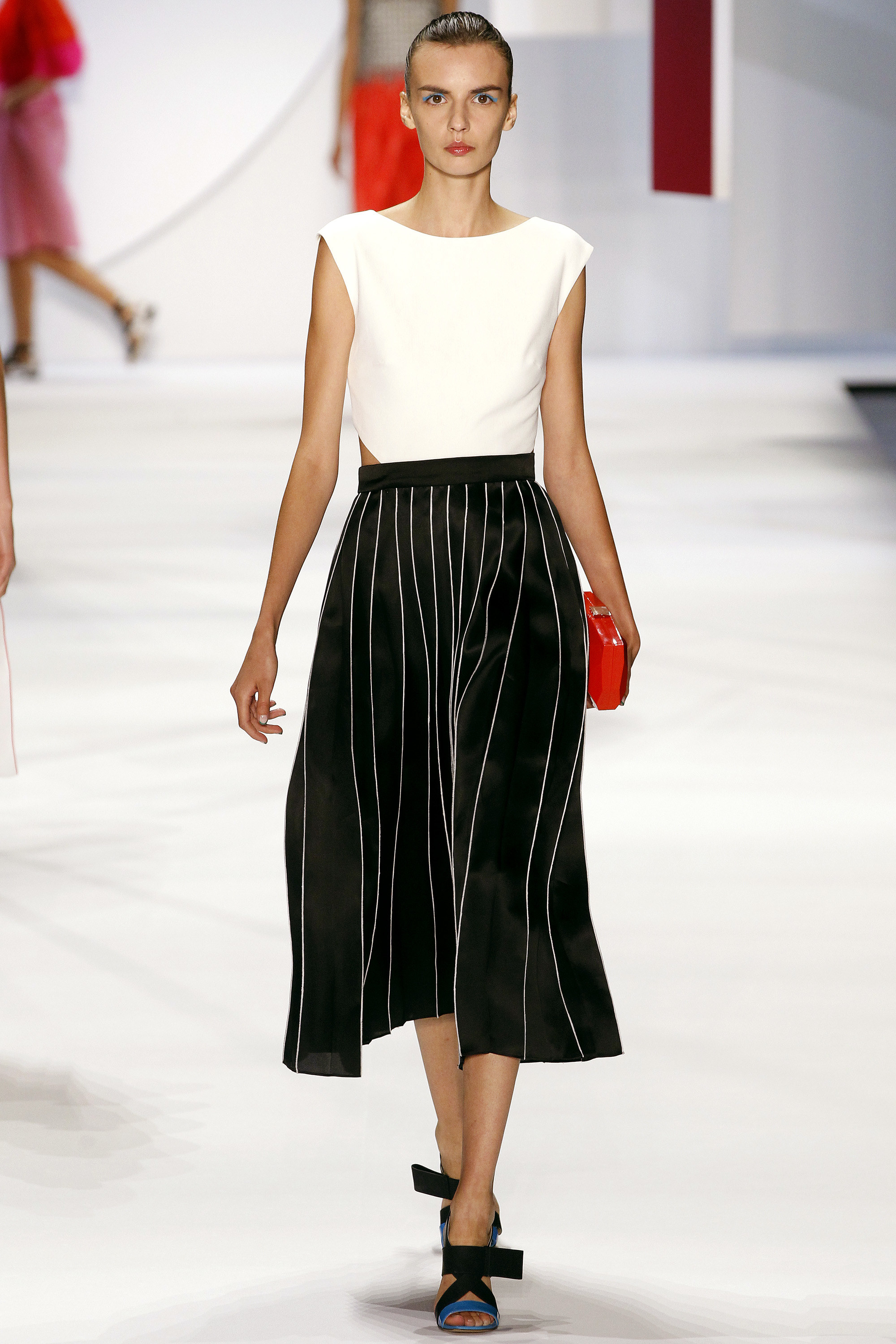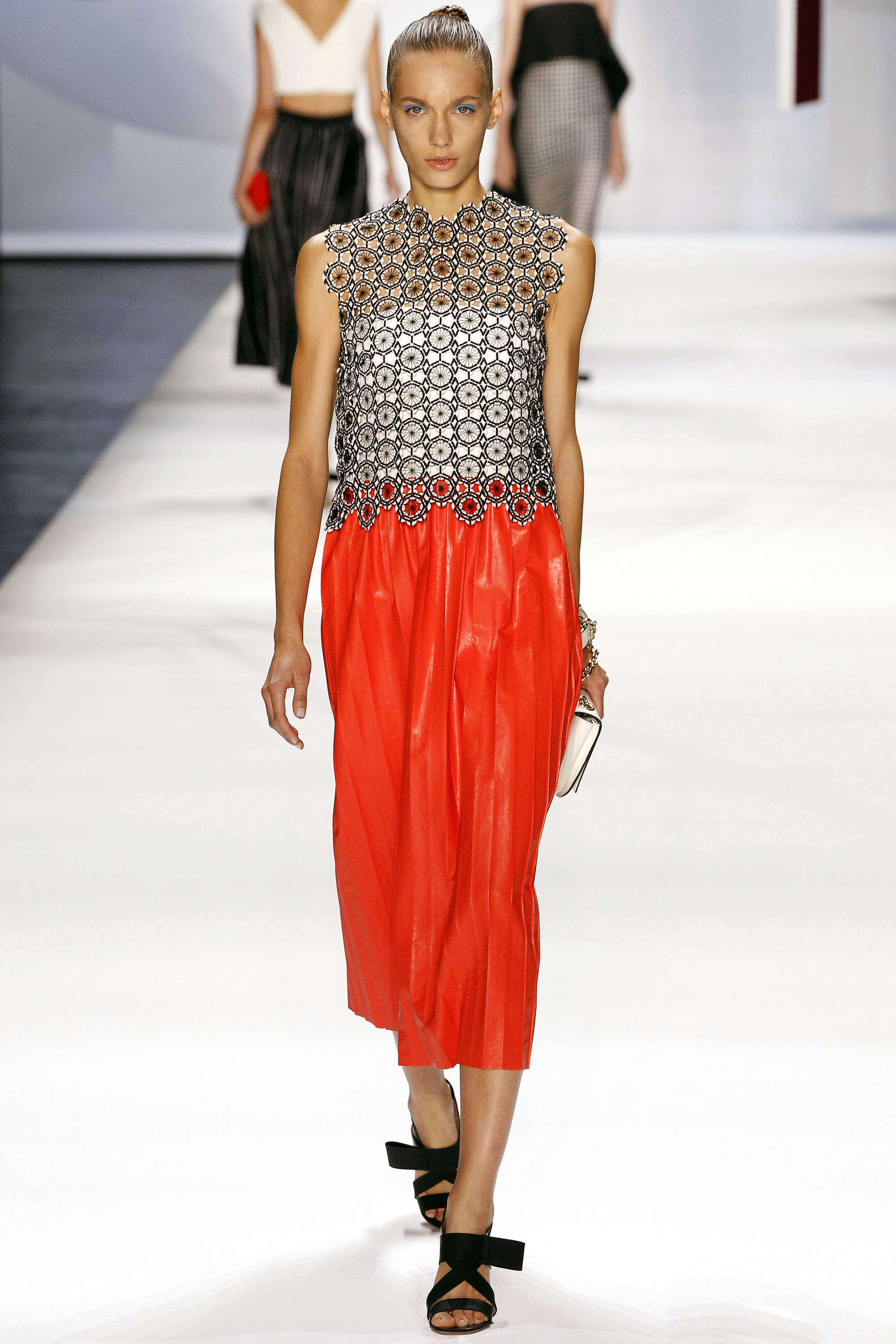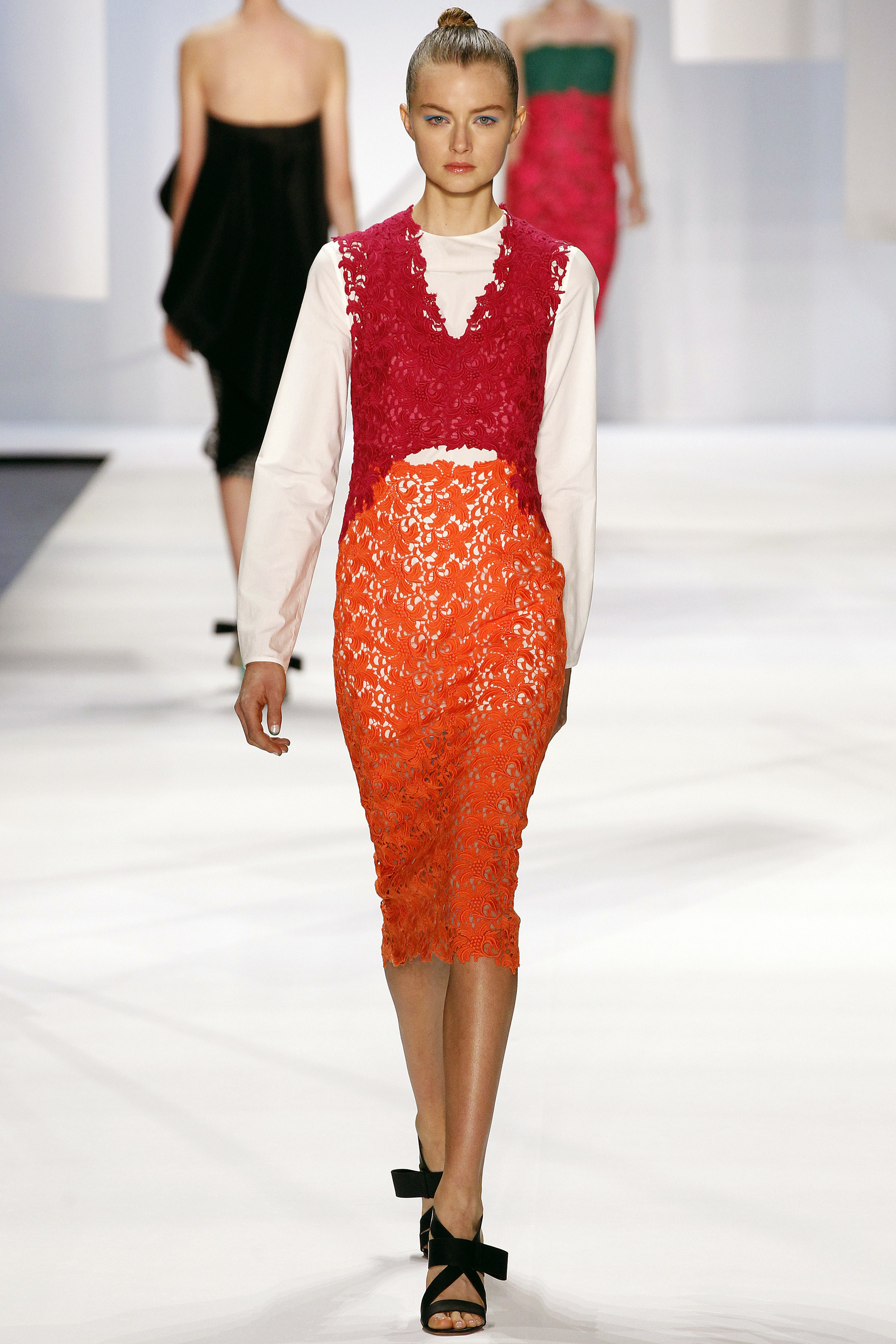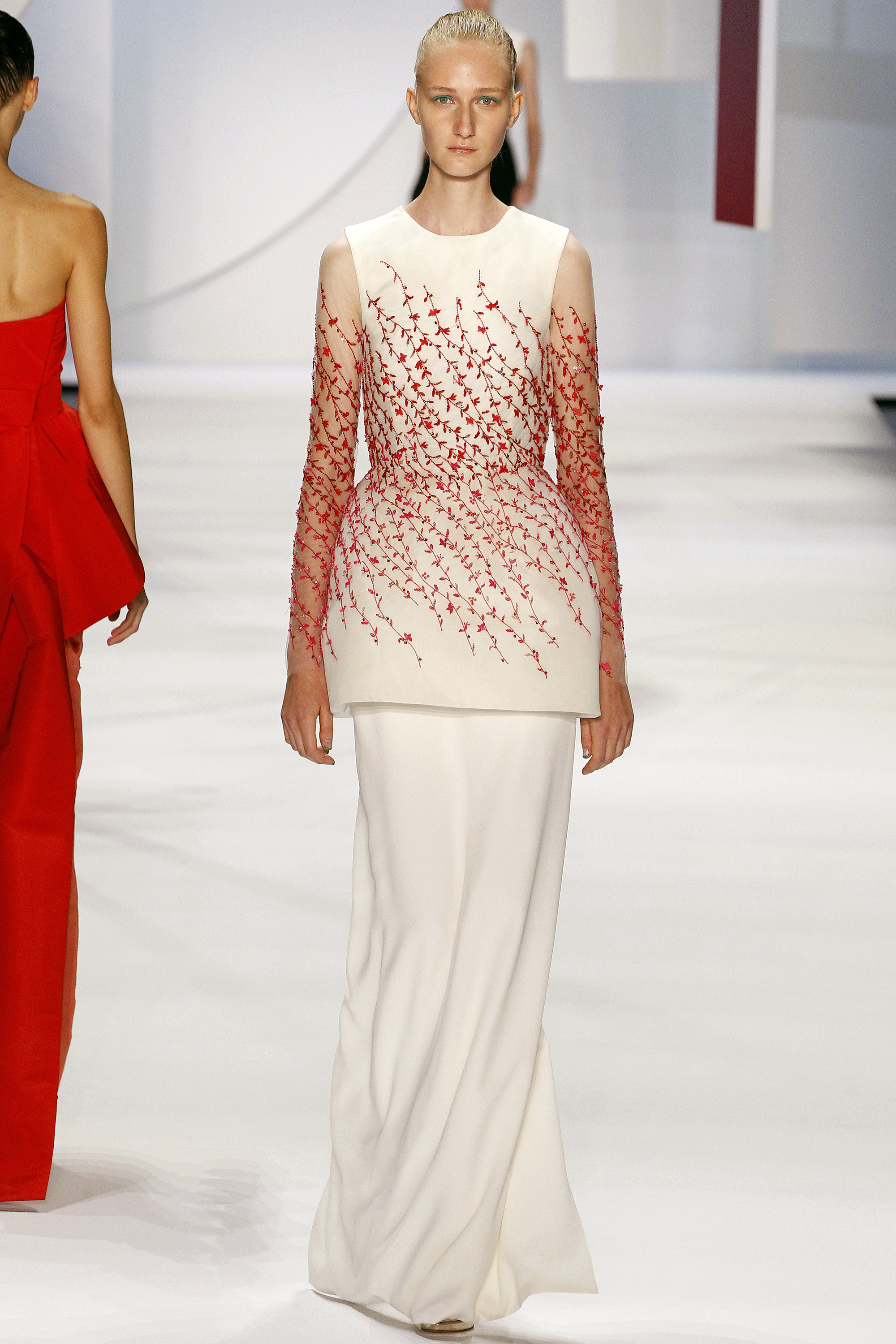 一開始的好幾套略嫌沈悶,直到開始使用顏色之後才讓我醒過來,可能又是我腦補,我在看這個系列的時候,腦海中不斷浮現Giambattista Valli的印花、Dior、Prada、Saint Laurent的輪廓,我比較看不到設計師自己的主張(除了美不勝收的顏色運用之外),感覺就是一系列好看的衣服,有點可惜。