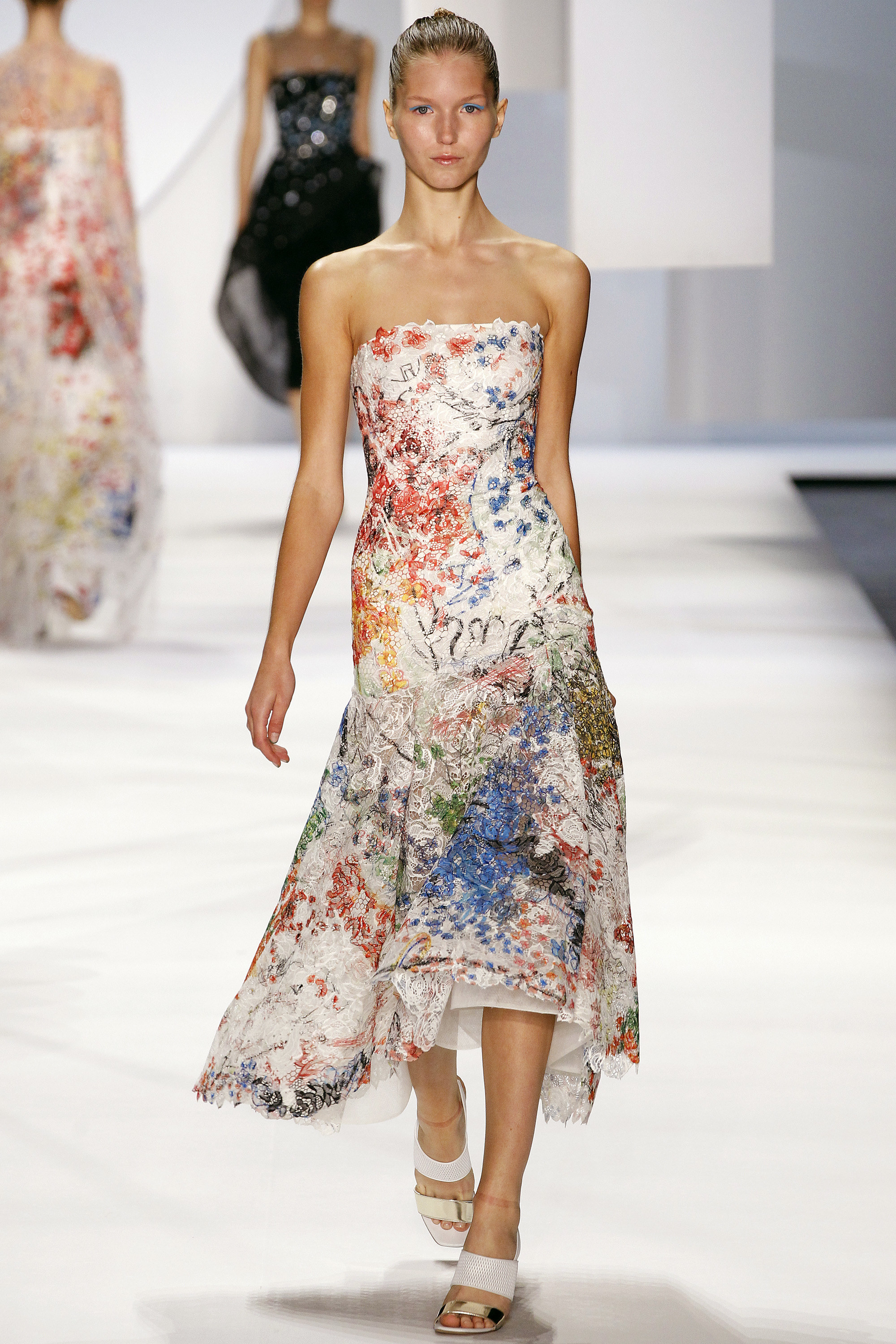 Monique Lhuillier從來都不害怕使用印花,這一季也不例外,這一季我很喜歡她充滿潑墨藝術感的顏色揮灑以及像是萬花嬉春般的顏色使用,配合優雅的輪廓以及大器的線條,是一個相當好看的系列。