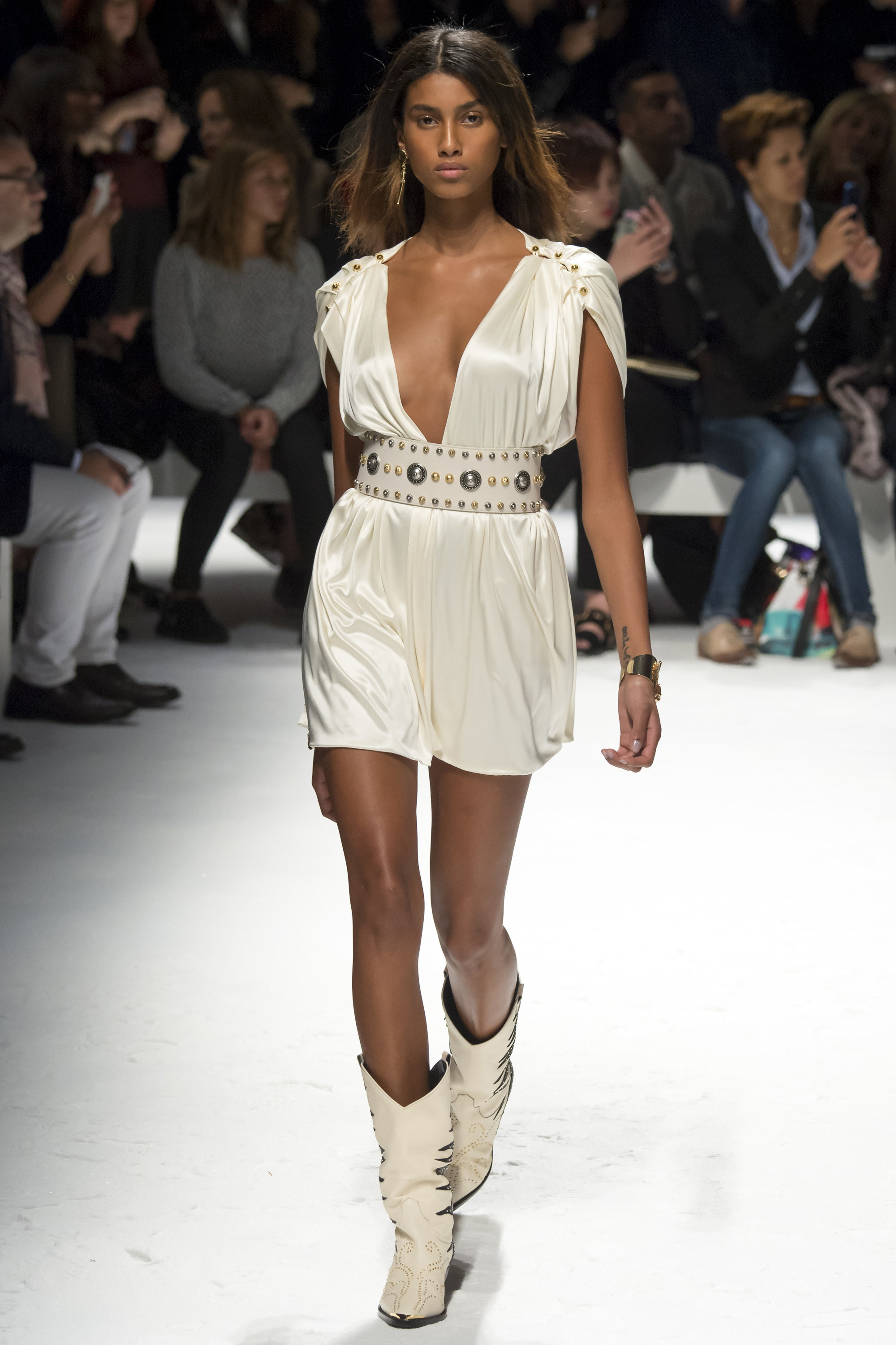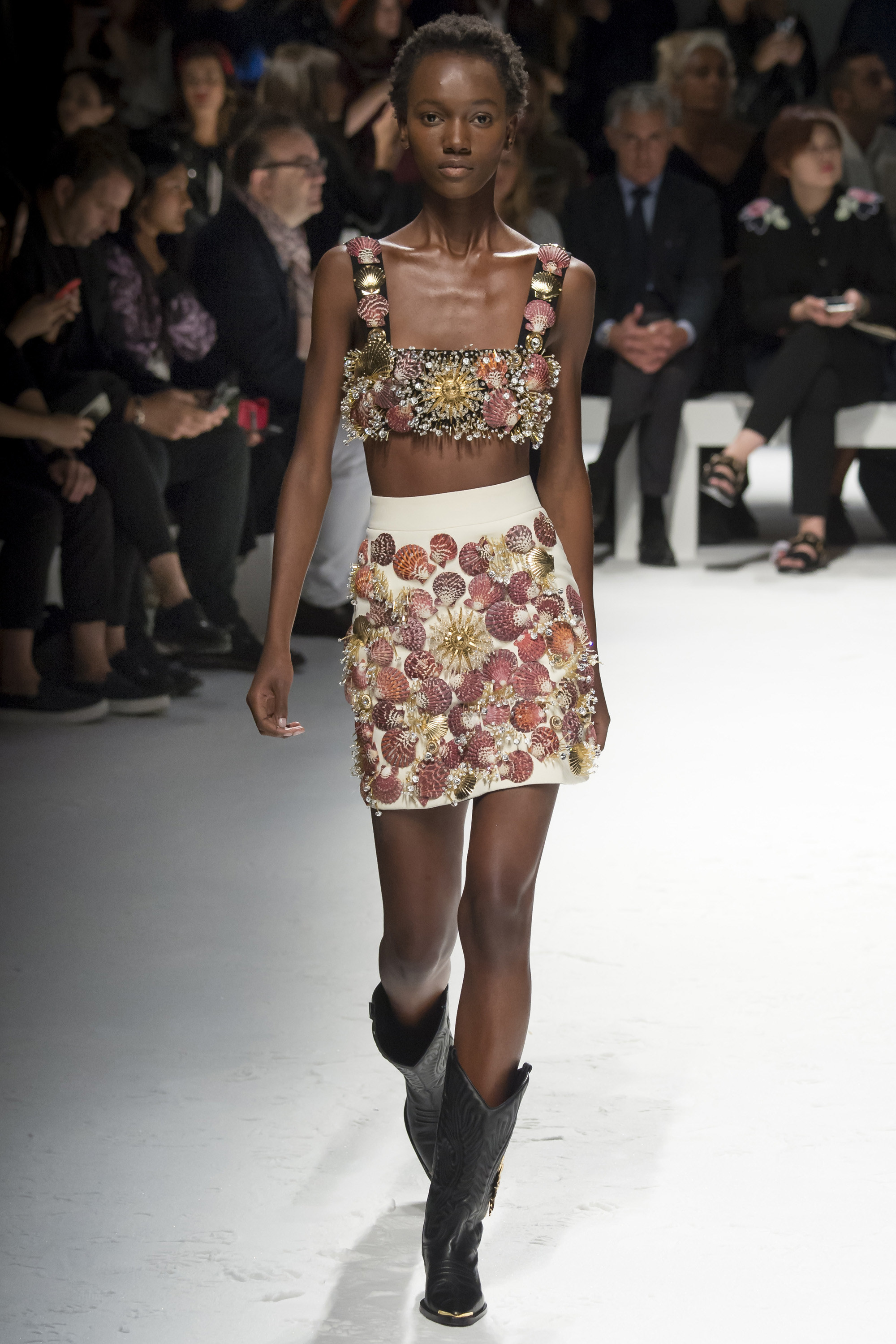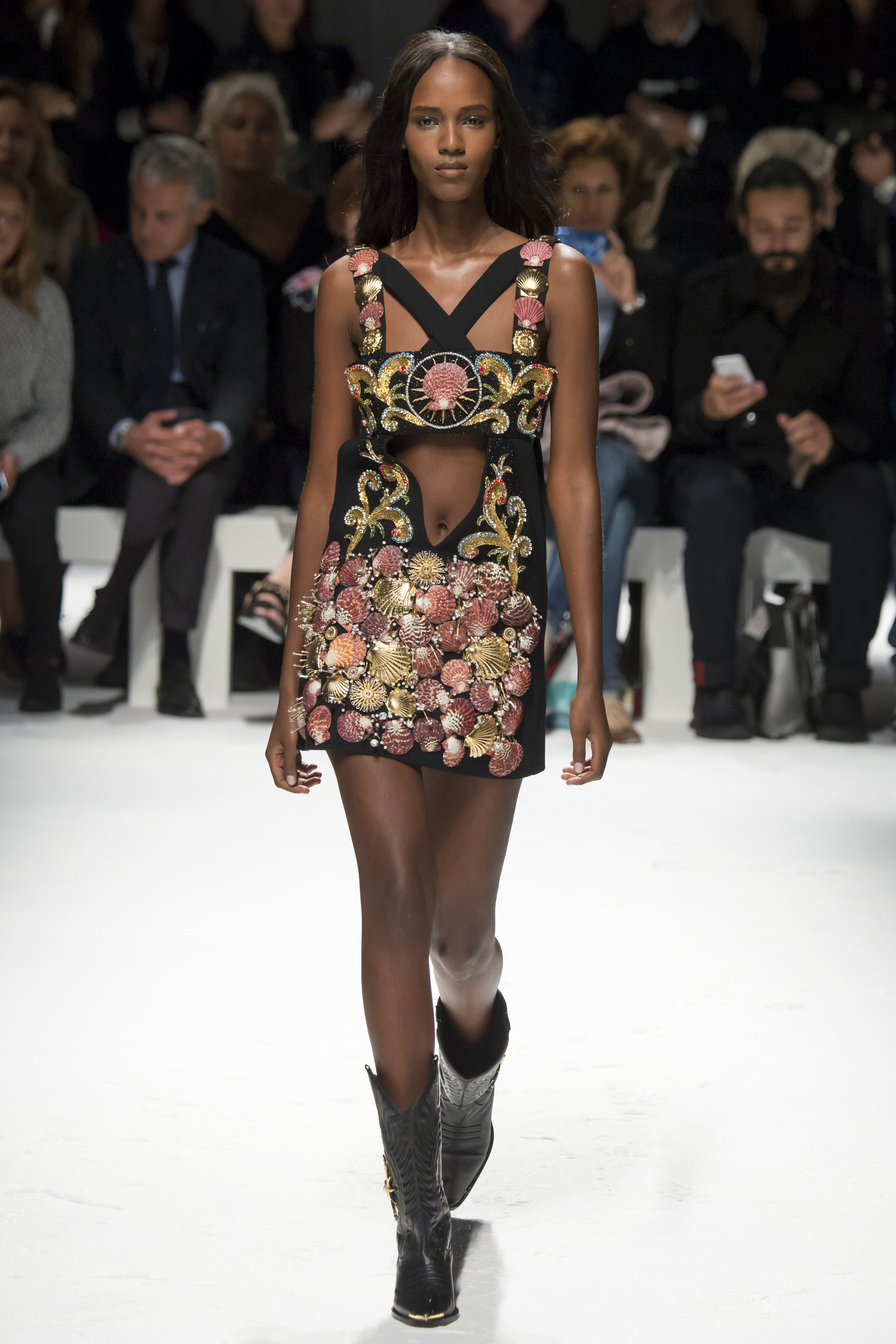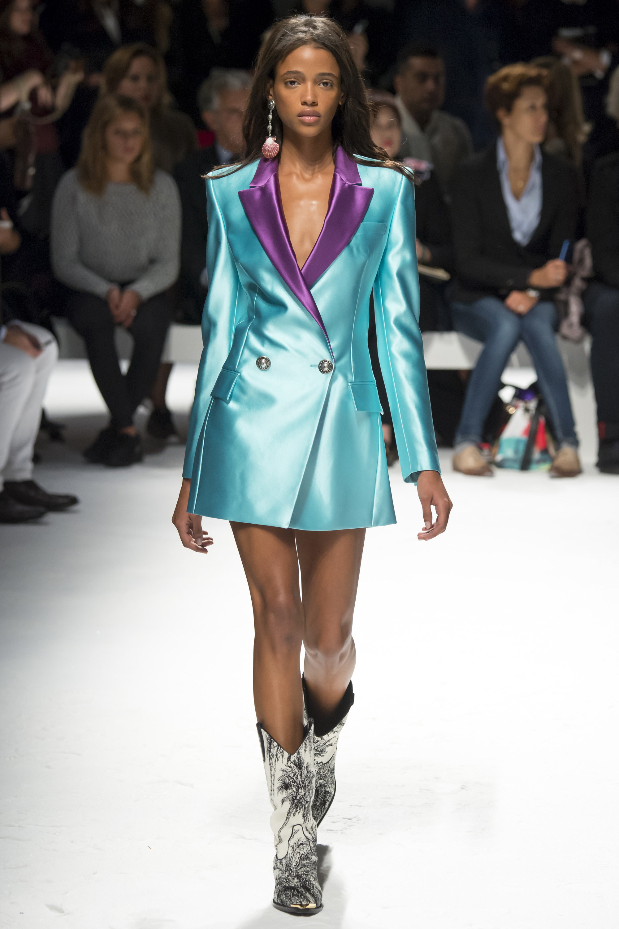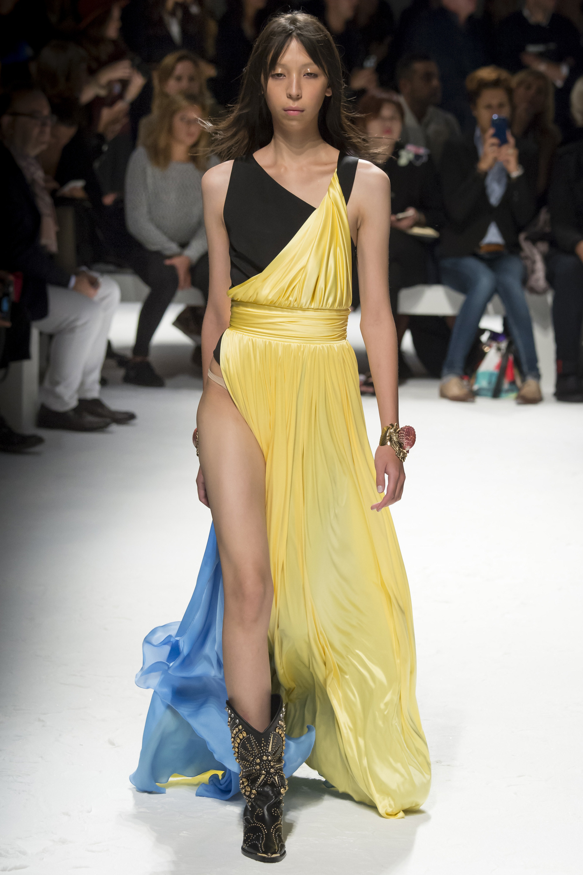 靈感取自於Madame Grès的斜裁與垂墜線條還有美國傳奇設計師Halston的簡約線條,所以我們看到了許多像是希臘女神般的禮服,當然,他也融入了自己獨特的個性以及搖滾感,像是應用在短裙的抓皺、不同顏色交錯堆疊的裙擺,都出乎意料之外的好看。對自己而言,踏出舒適圈的第一步就是值得鼓勵,只是在顏色的運用,還有一些交叉線條的運用上,不免讓我聯想到Balmain,這系列好看,但似乎少了點讓人想鼓掌的驚喜。