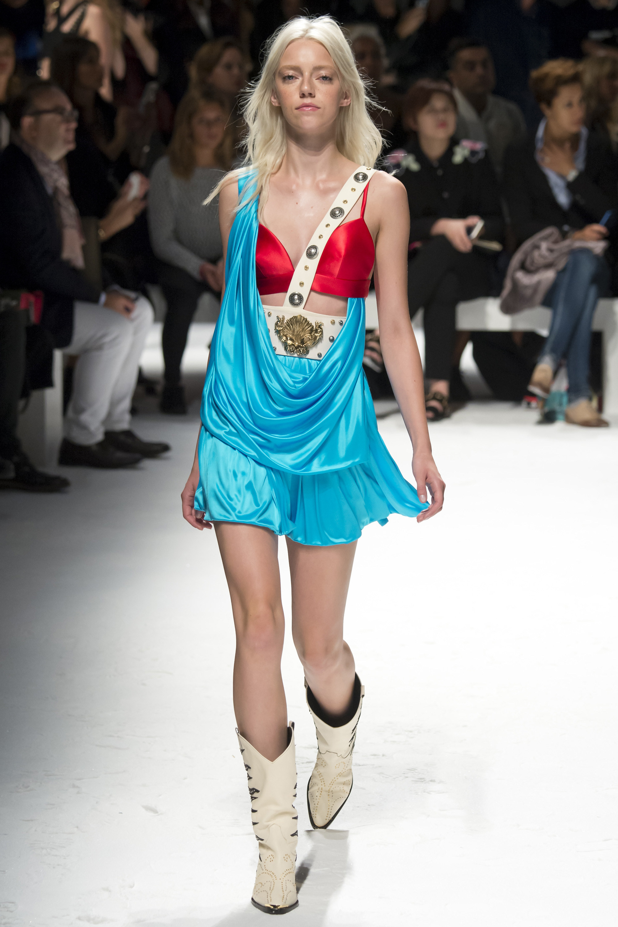 Fausto Puglisi這個常常由Rita Ora穿出來和大家見面的品牌,都是以大膽、醒目的剪裁和服裝上的裝飾聞名(記得身上的太陽型金屬綴飾或是Met Gala那個太陽花公主嗎?),但是2016的Fausto Puglisi則是換了一個面貌,以搖滾女神的姿態來到了米蘭。