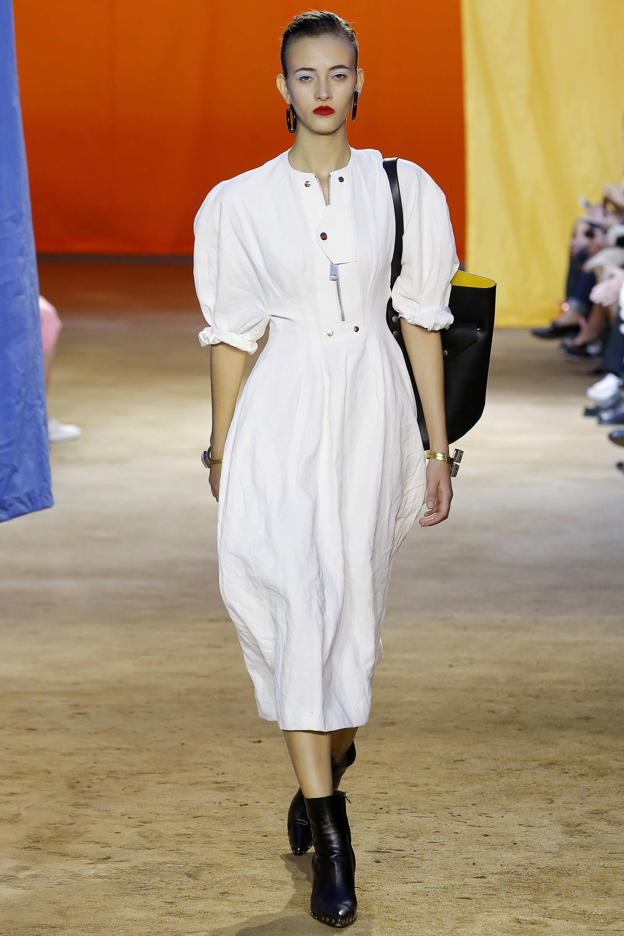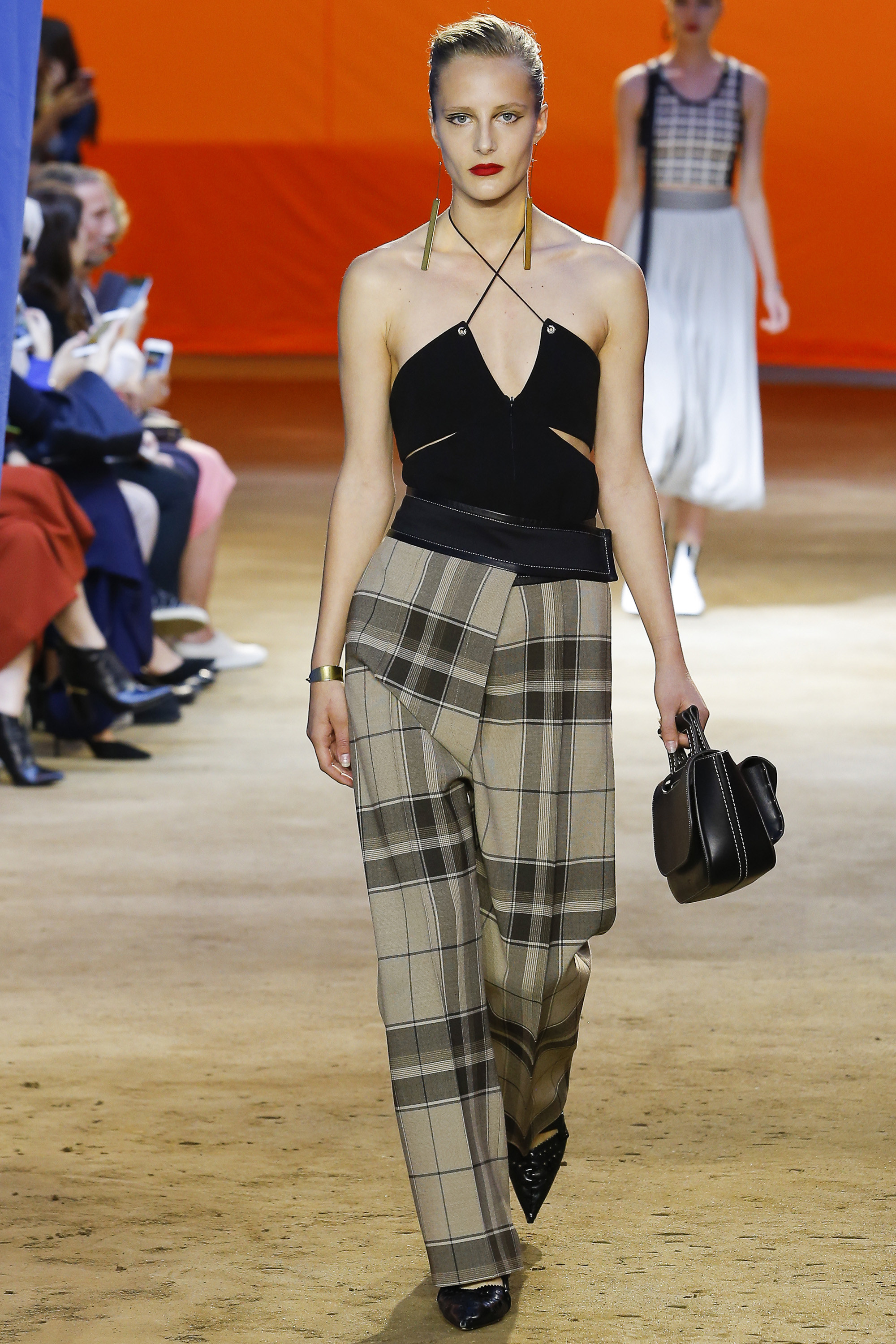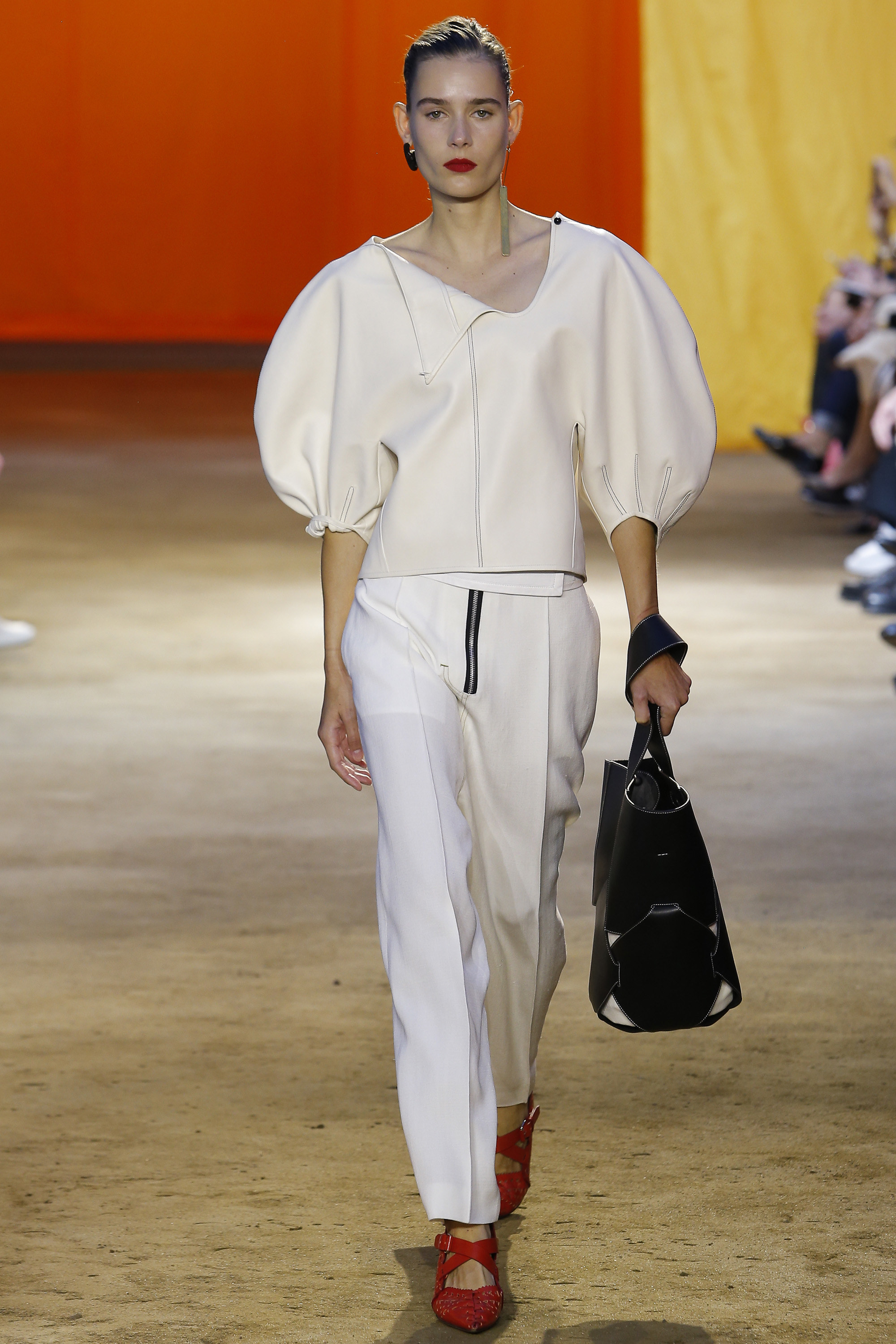 會場佈置得就像是一個裝置藝術,有著砂地的黃;豐饒的紅土,表明了這系列將會是一個貼近大地,或者是說非常實際取向的一個提點(會場是丹麥設計師FOS的傑作)。Phoebe Philo表明,她這一次的靈感來自女人的旅行。現今科技發達,天涯若比鄰,空間的距離已經不是問題,女人可以到任何她們想去的地方旅遊,因此,即便春夏,也有可能到寒冷的地方去,所以,皮草或皮衣的需要也情有可原;此外,隨著旅途的心情轉折,選合襯的衣服也是理所當然,就因為這些實際的需要,我們看到了這個美麗到目不暇給的系列。