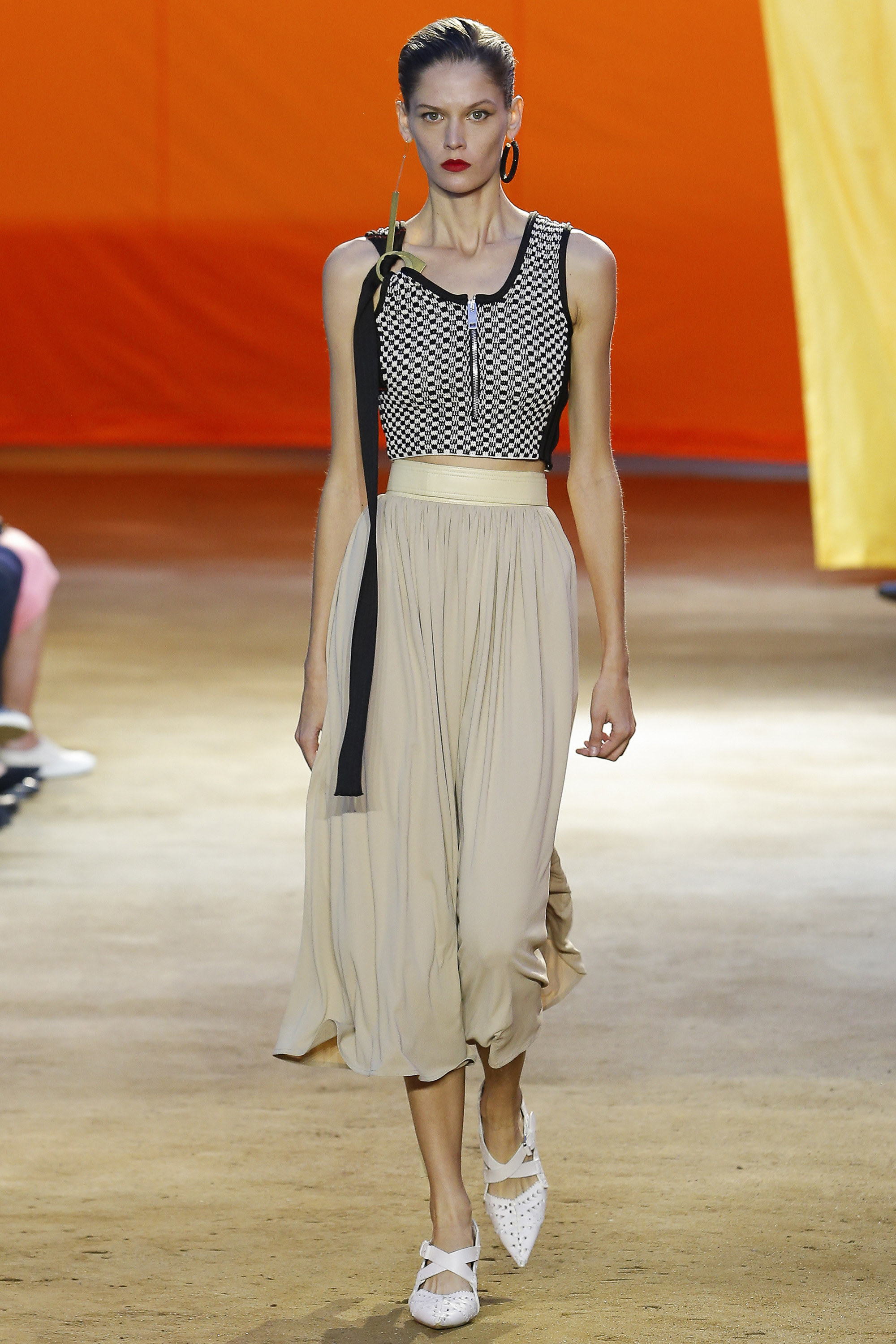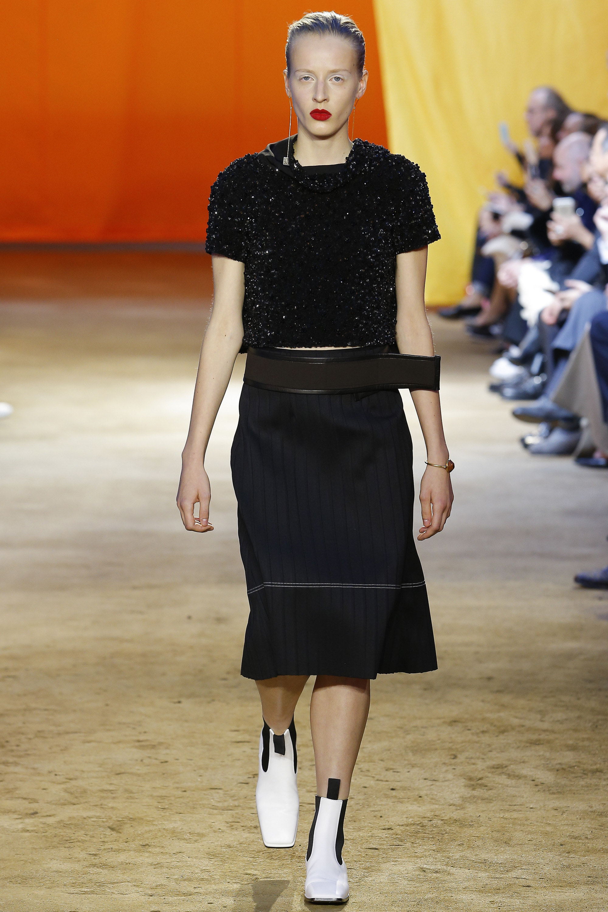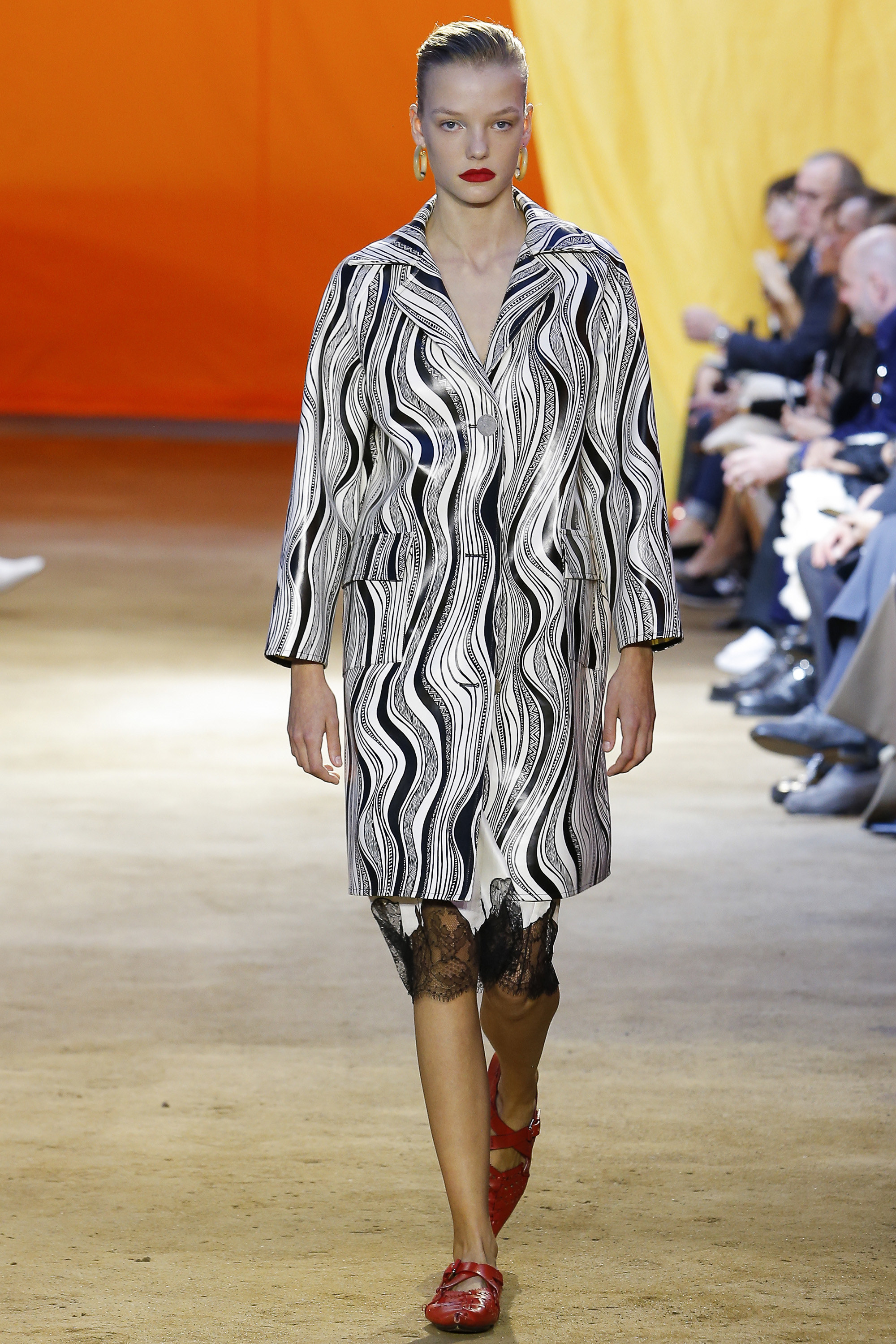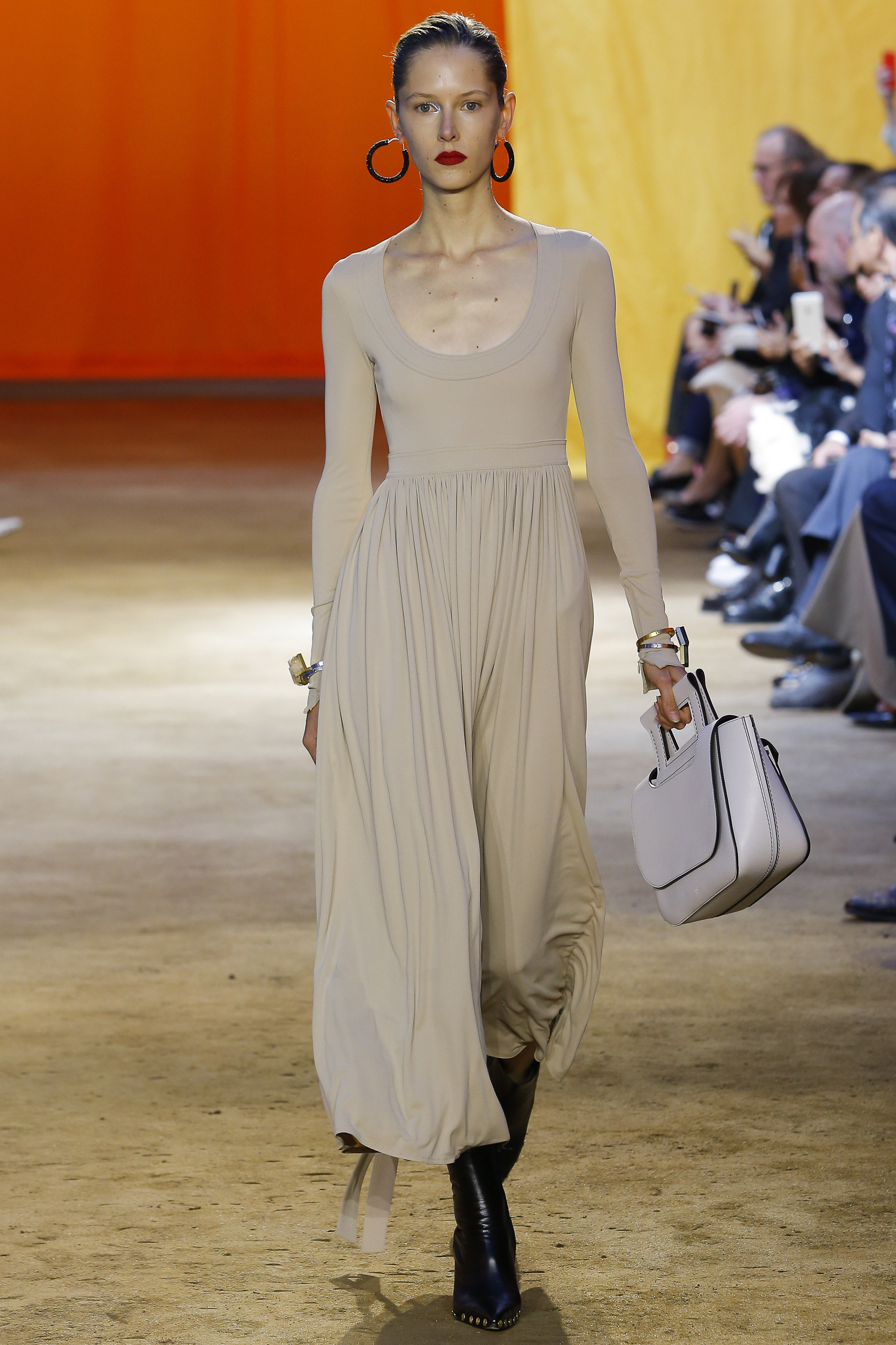 會場佈置得就像是一個裝置藝術,有著砂地的黃;豐饒的紅土,表明了這系列將會是一個貼近大地,或者是說非常實際取向的一個提點(會場是丹麥設計師FOS的傑作)。Phoebe Philo表明,她這一次的靈感來自女人的旅行。現今科技發達,天涯若比鄰,空間的距離已經不是問題,女人可以到任何她們想去的地方旅遊,因此,即便春夏,也有可能到寒冷的地方去,所以,皮草或皮衣的需要也情有可原;此外,隨著旅途的心情轉折,選合襯的衣服也是理所當然,就因為這些實際的需要,我們看到了這個美麗到目不暇給的系列。
