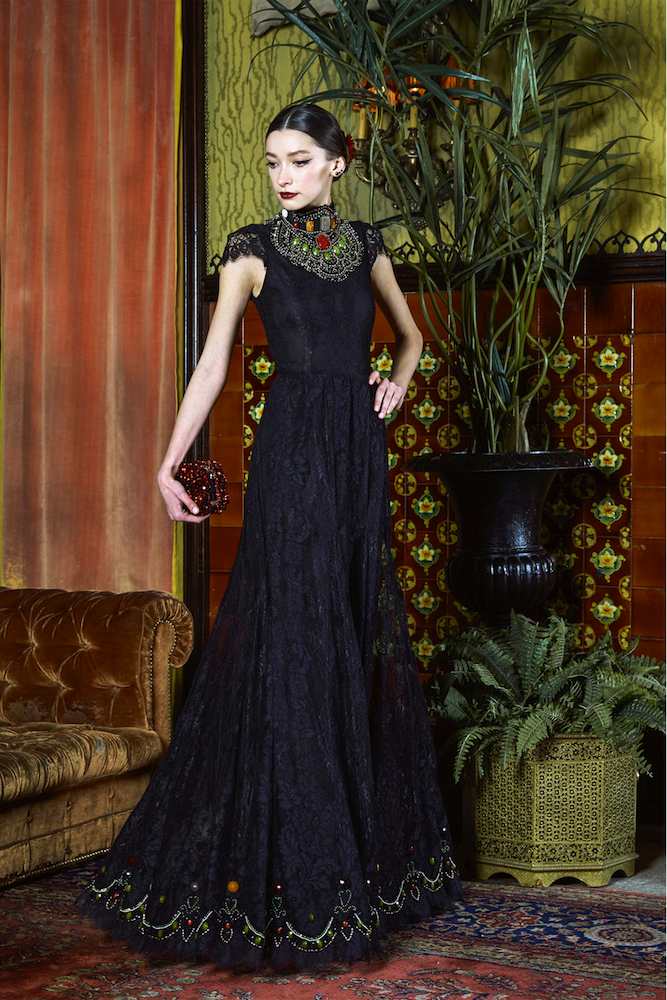 張鈞甯到香港出席莎莎銀袋日的活動,身穿 Alice + Olivia by Stacey Bendet 2015秋冬的洋裝,這一件黑色洋裝上面有著許多寶石配飾,相當有貴太太的味道,但當她配上這個帽飾以後,好像是高鐵還是空姐的服務員一樣…(當然氣質還是一樣好啦,但可以斟給我一杯咖啡嗎)