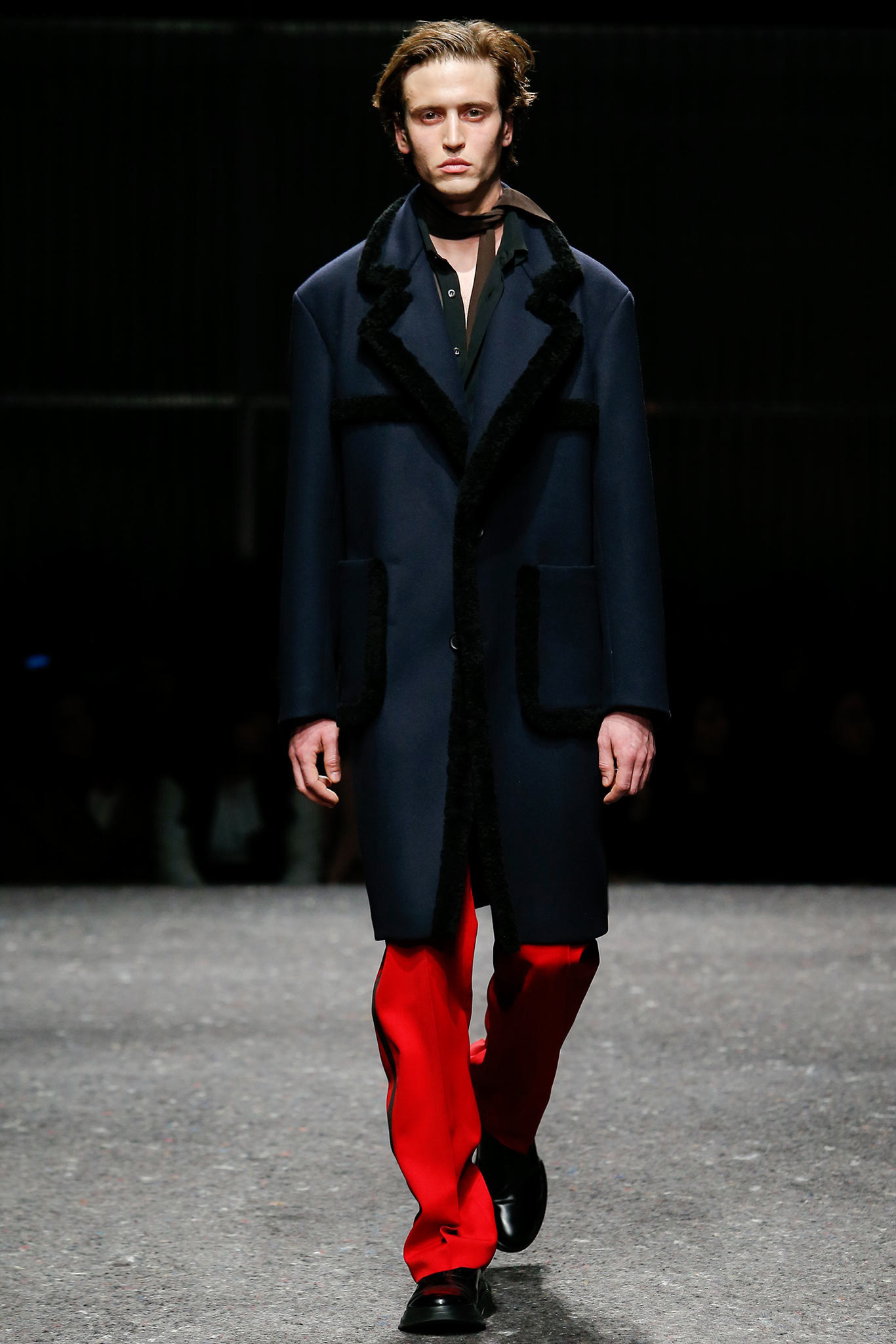 這件是藏在 Prada 2014秋冬女裝系列中穿插的男模所穿的大衣,很有氣勢,很好看,我是覺得他越來越做自己了,從衣服、設計到最後選穿的衣服,都說明了這一點。