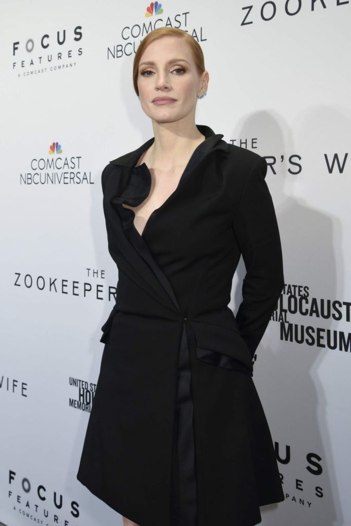 Jessica Chastain出席電影【The Zookeeper’s Wife】(園長夫人)在華盛頓的試映會時,選穿了 Carolina Herrera 2017 春夏的黑色小洋裝。相較於首映的正式,試映會穿黑色小洋裝是聰明的選擇,但這一件實際穿出來以後線條變得很不流暢,有點亂亂的,感覺有點兒小狼狽耶。
