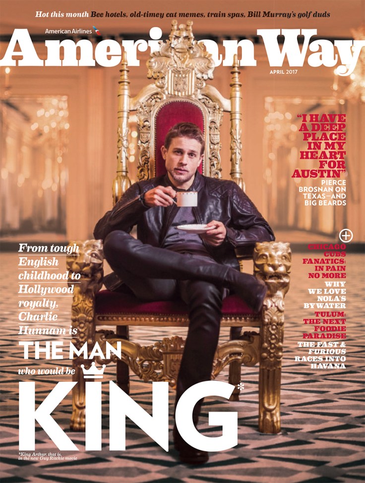 準腦公 Charlie Hunnam 是最新一期「American Way」的封面人物, 調皮的粗獷感,穿衣斯文,脫衣狂野,嘖嘖😘