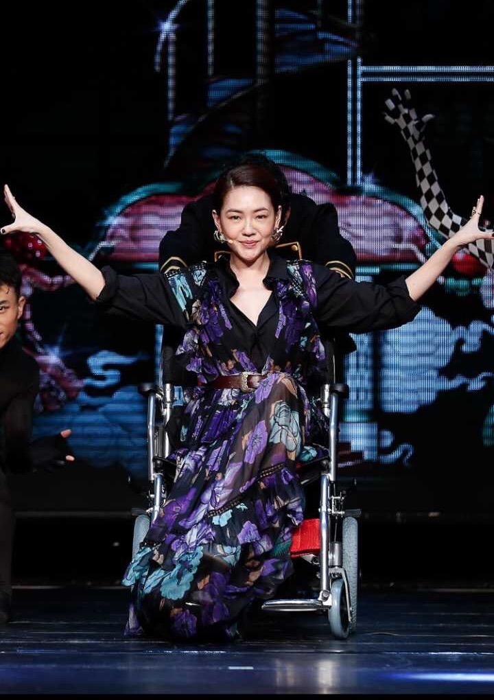 也是很難得看到女星坐輪椅穿華服出來宣傳啦… 小S 徐熙娣在姐姐好餓第二季的發佈會上,穿了 Alberta Ferretti 2017春夏的洋裝亮相,是挺浪漫也成熟的,但腰帶顏色有點跳痛耶。