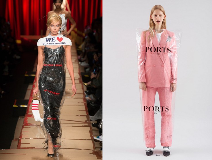 可以參考 Moschino 2017秋冬或是 Ports 1961 2018早春的搭配,把洗衣袋套在身體外面一來防水、二來讓大家看到你穿什麼,捷運上一定威風凜凜~~~(有事嗎