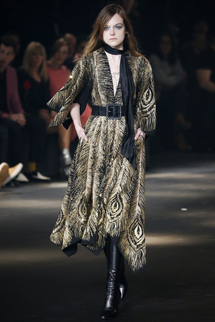 蕭婆嘎 Lady Gaga在哀居上發的新照片,是穿了 2016早秋 Saint Laurent的金色孔雀羽毛刺繡洋裝,搖滾又華麗,重點是臺灣的小怪獸們快和 Mother Monster 說來我們這個星球啊!