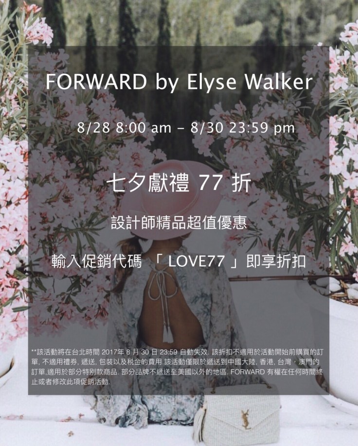 今天是七夕,布布可能沒有辦法送給大家一個織女或是牛郎,但是有一個獨家的優惠在這邊告訴大家,就是FWRD從今天開始有一個七七折的活動!