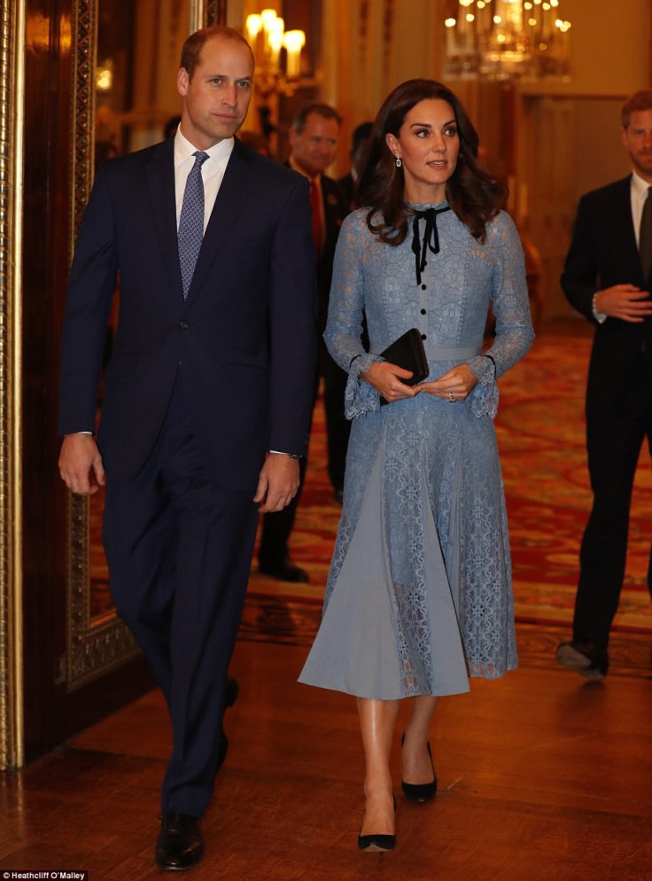 凱特王妃出現在Buckingham Palace時,身上這件 Temperly London水藍色蕾絲洋裝細膩溫柔,端莊又很有氣質,相當適合她!鞋子和包包也搭配得很好,好看!