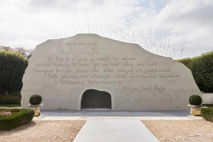 2018春夏,可以說是她執掌Dior滿周歲的一季,從入口那顆刻著Niki de Saint Phalle所說的「If life is a game of cards, we are born without knowing the rules」的大石就讓人覺得興奮與佩服。