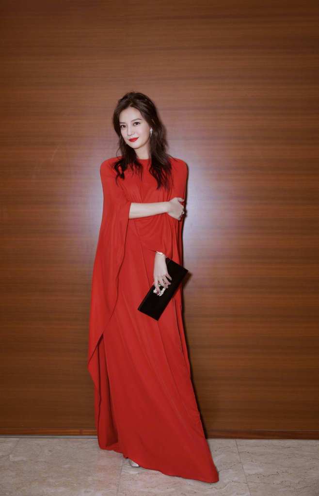 趙薇是本屆東京影展的評審,在開幕紅毯上身穿 Stella McCartney 2018早春紅色洋裝,手拿 Roger Vivier 的手拿包,這一身真的是各種身型與年齡都適合喔,雍容華貴,但銀色厚底…