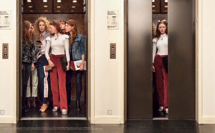 Vogue Italia十一月的封面大片還挺有意思的,是以電梯為概念。搭電梯除了一進電梯就要先照鏡子端正儀容以外,當然是要看看其他人的穿搭啦!這次 Raquel Zimmermann擔任電梯中的百變女郎,除了她很有戲,電梯裡的乘客表情也很有趣!喜翻!