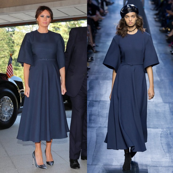 Melania Trump這次和腦公一起出訪時,儼然是場時裝秀,而且是各種風格都有的個人大秀。除了之前介紹過的 Fendi之外,還有帶一點點東方旗袍風格的 Gucci、成熟大器又浪漫的 Dolce&Gabbana、 還有兩套典雅摩登的 Dior洋裝, Delpozo的洋裝(這雙高詢問度的高跟鞋來自 Manolo Blahnik)以及單穿就很搶眼的 Emilio Pucci大衣,好厲害,你有沒有比較喜歡的呢?