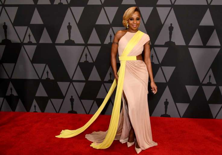 Mary J. Blige也出席了Governors Awards,好喜歡她穿衣服的風格,總是會大膽嘗試;今天她選的是來自 Cushnie et Ochs 2018春夏的洋裝,這個藕色與鵝黃的配色粉嫩年輕,在腰部的部分又很性感,有點仙又可愛,喜歡。