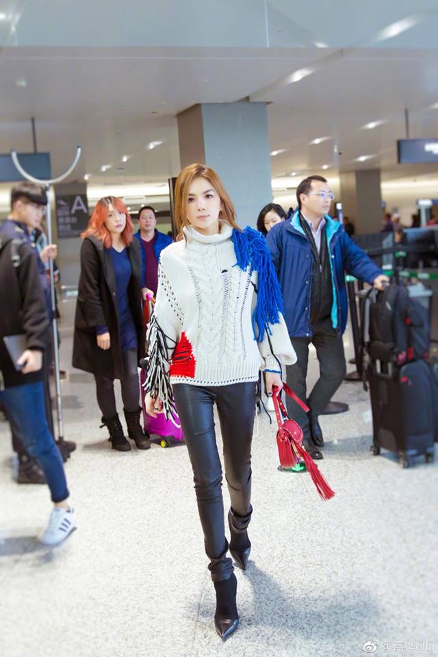 哎呀, Ella 陳嘉樺竟然飛到中國看維秘大秀了(驚)!在機場這套 Zadig & Voltaire 2017秋冬的針織毛衣也太好看了吧!這配色看了心情好好喔!而且腿的線條怎麼那麼美啊,厲害!姐應該來個天使飛吻啊(笑