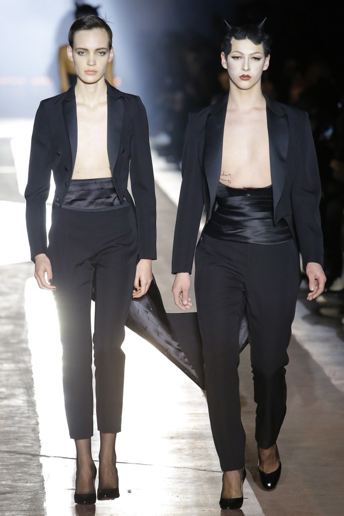 除了這一層之外,另一層他也刻意淡化服裝上有關性別的語言。看到謝幕走出來 Violet Chachki還有Oslo Grace,我就好開心!這兩位走在一起,安能辨他們是雄雌!