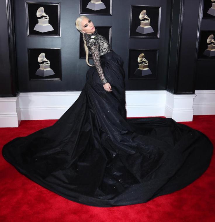 蕭婆嘎 Lady Gaga是今天葛萊美獎的紅毯第一棒!這套 Armani Privé的特製禮服大器中帶有細膩,全身都是黑色蕾絲,高雅性感,從腰部延伸下去的裙擺氣勢驚人,妝髮也很棒,今天的嘎嘎沒有要輸人!