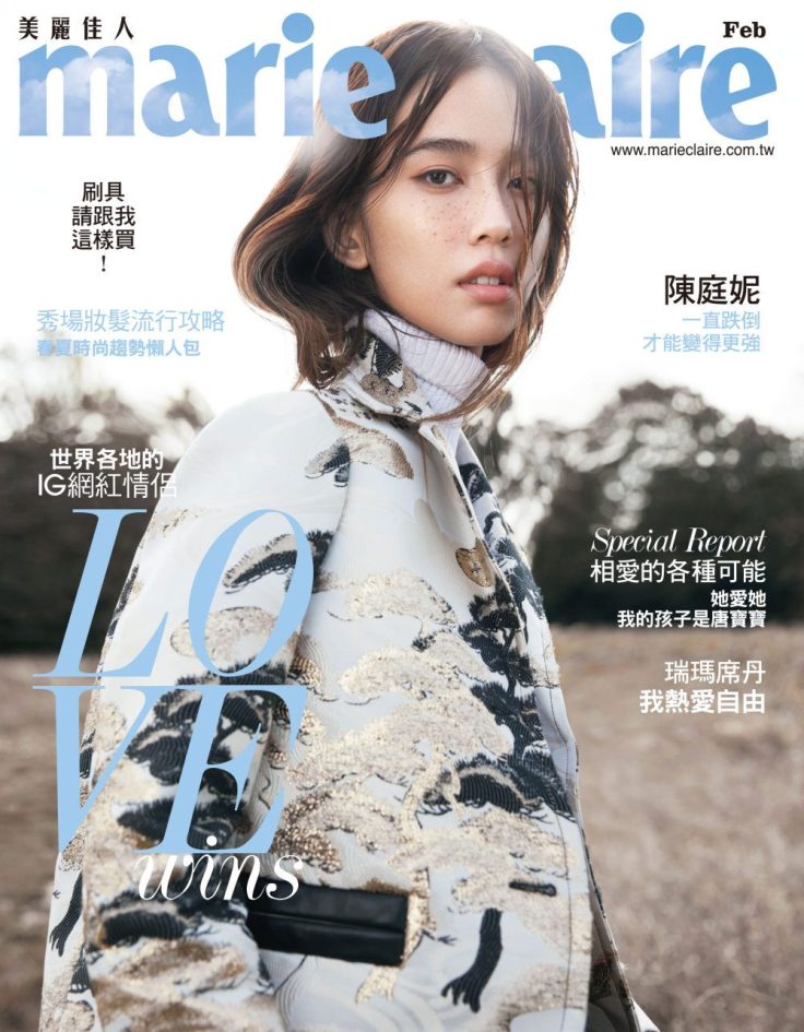 美麗佳人 Marie Claire Taiwan二月號的封面人物是陳庭妮!是個乾淨的封面,可是怎麼會有白雲在字裡?我喜歡這個造型,妝髮基本上也喜翻,有點慵懶也有點隨性,只是臉上的點點有一咪咪太刻意惹~