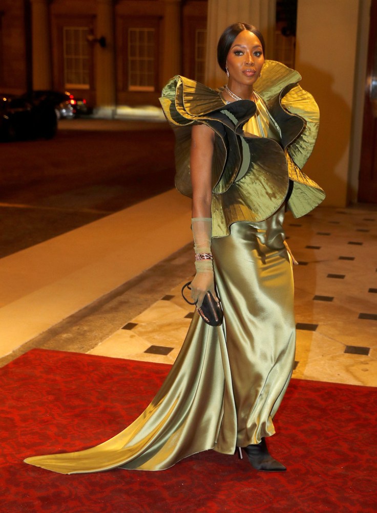 Naomi Campbell這身 Pierre Cardin 的古董洋裝太強大了,這個扇貝荷葉邊的剪裁好美,會不會有毒針往四面八方射出?