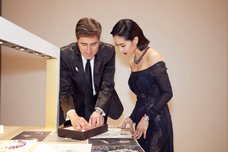 Jolin 蔡依林出席 Bulgari FESTA頂級珠寶暨腕錶展時,穿了 Roberto Cavalli 2018春夏的禮服,這件禮服大器中帶性感,環狀的鏤空設計製造若隱若現的性感,項鍊好美,她和寶格麗好合襯喔!