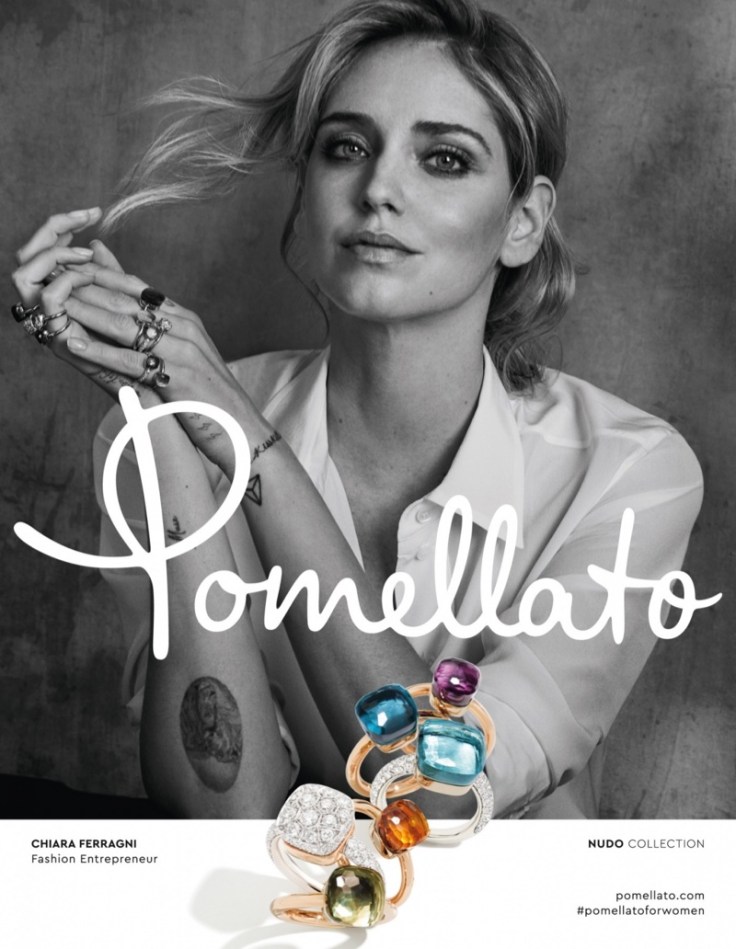 甫喜獲麟兒的 Chiara Ferragni(最近每天都在瘋狂曬兒),她擔任 Pomellato 的大片釋出,我覺得很美,是相當典型的代言美照,知性、雋永,但彩寶以黑白的方式呈現,我自己是覺得味道好像差了一點點(是我太挑剔)。