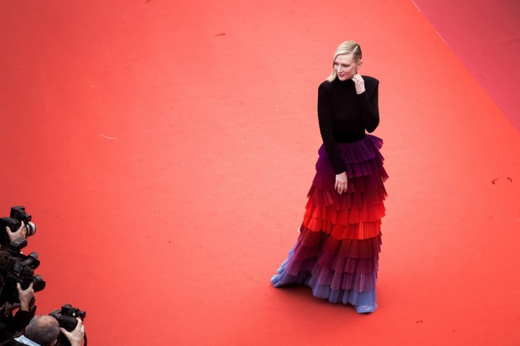 還好,精靈女王 Cate Blanchett 在坎城影展【Blackkklansman】首映紅毯上,把這件穿出來了!No rain can’t get the rainbow,在坎城下雨的這天,女王化身為紅毯上的一道彩虹,太美了。
