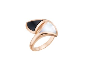 BVLGARI Divas’ Dream系列玫瑰金珍珠母貝與黑縞瑪瑙耳環戒指,約TWD 80,300元(353774)