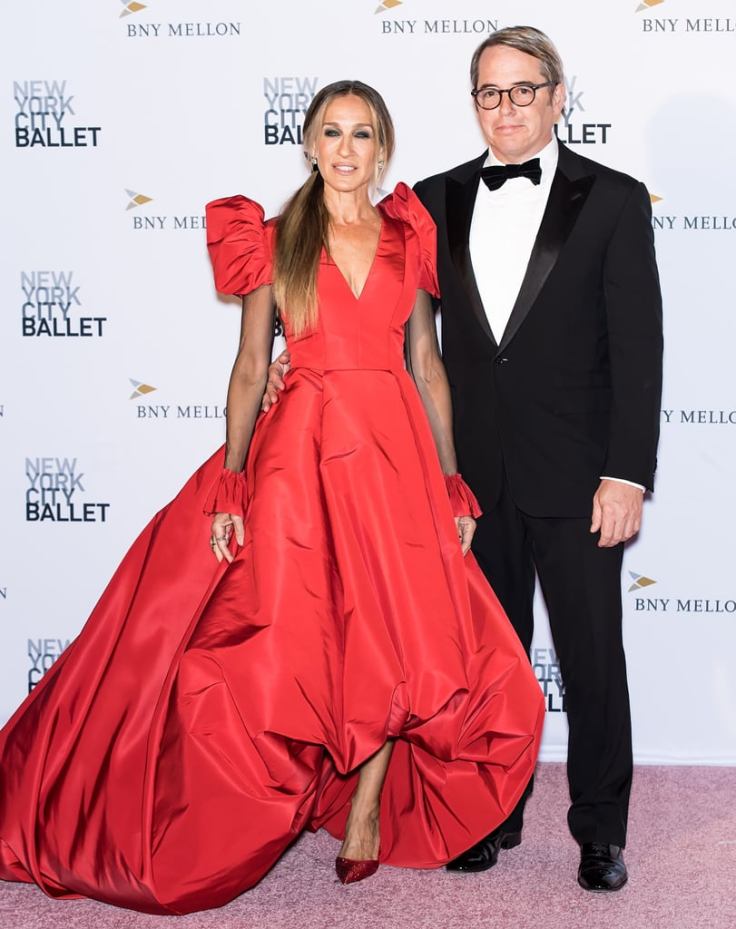 莎拉俊雄 Sarah Jessica Parker出席2018紐約芭蕾慈善晚宴時,選穿了 Giles Deacon 特別訂製的禮服,這件在輪廓上有一點點像是2016秋冬高訂;我蠻喜歡這套的,成熟大器,挖背性感,鞋子配得好,髮質看起來也很順,好看!