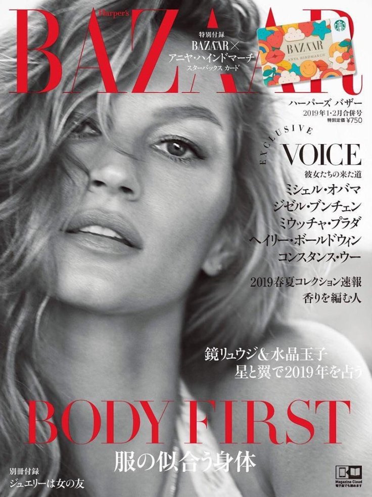 日本版BAZAAR 2019開年號的封面也釋出了,請來 Gisele Bündchen大神,希望內頁照片不會再是看來一小時拍完的那種(誤
