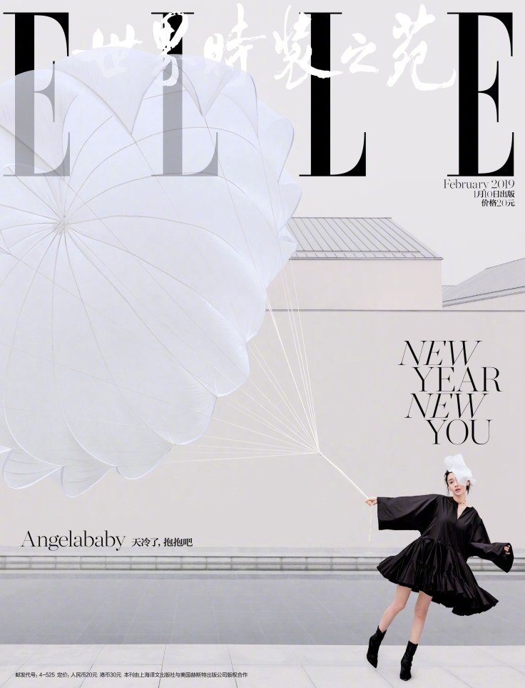 中國 ELLE 二月號封面大片釋出!這次的封面人物是 Angelababy 楊穎,喜歡她穿 Dior 2019春夏黑色洋裝,拉著拖曳傘的封面,虛實相間挺有意思;另一版封面太置入,而且網狀膚色洋裝有點壓力衣感…