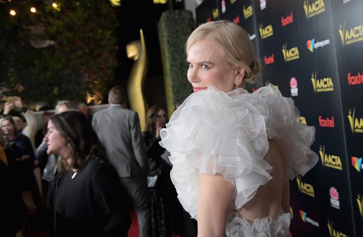 蠟人妮 Nicole Kidman出席第八屆AATCA(澳洲影藝學院頒獎典禮)時,選穿了 Miu Miu 特別訂製的禮服,這件上半身的荷葉邊很華麗,配上黑裙顯得優雅華貴,皮膚真的有夠緊致,吹彈可破…