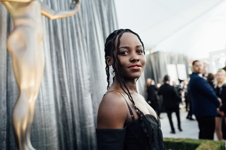 Lupita Nyong’o 這套 Vera Wang 的訂製禮服有一點解構感也有科幻華麗感,辮子頭好夠味呢。